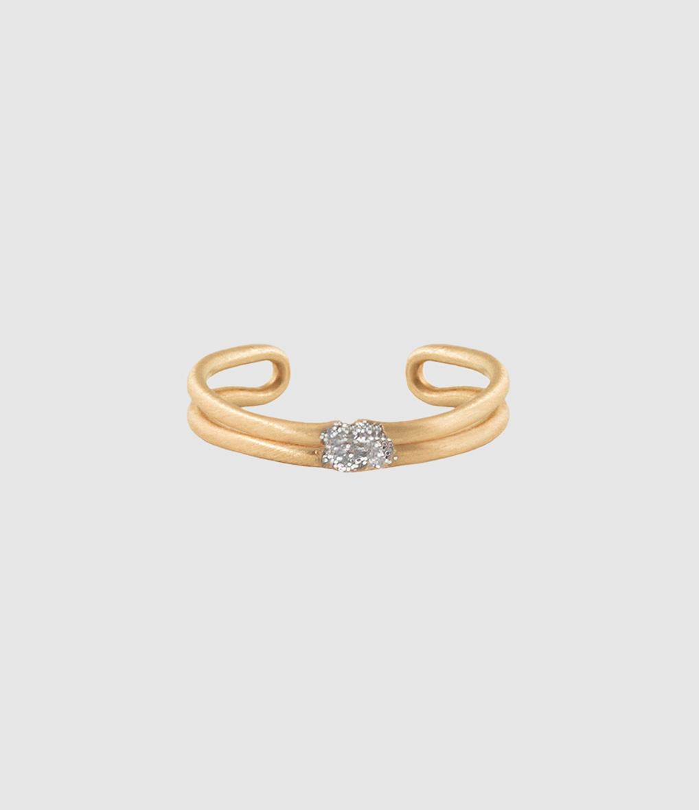 Bague double en argent doré à l'or fin, avec inclusion pailletée. Réglable.