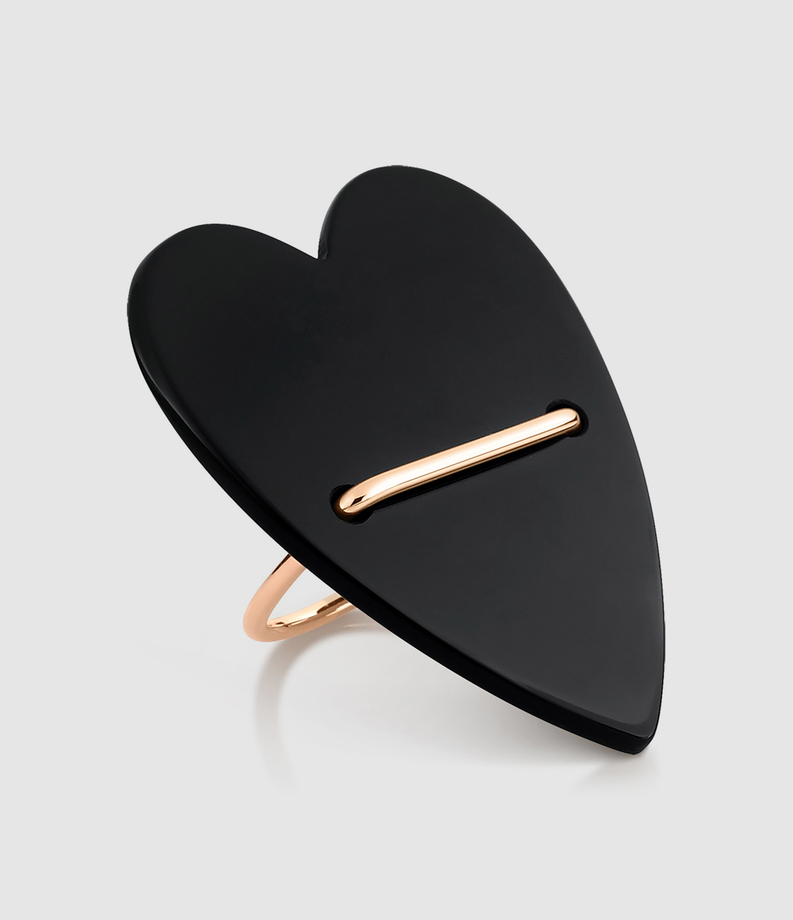 Bague Angèle Jumbo Cœur Or Rose Onyx