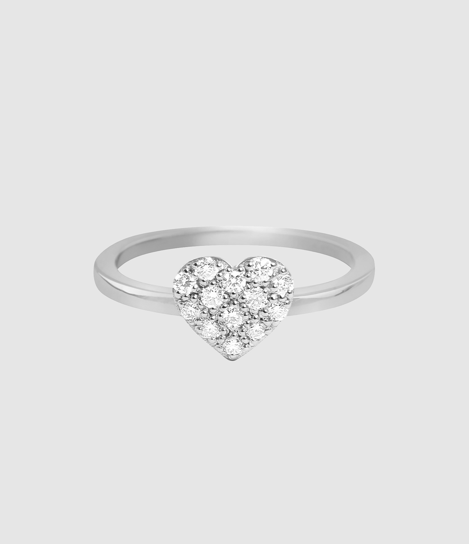 Bague fine en or blanc ornée d'un cœur serti de diamants.