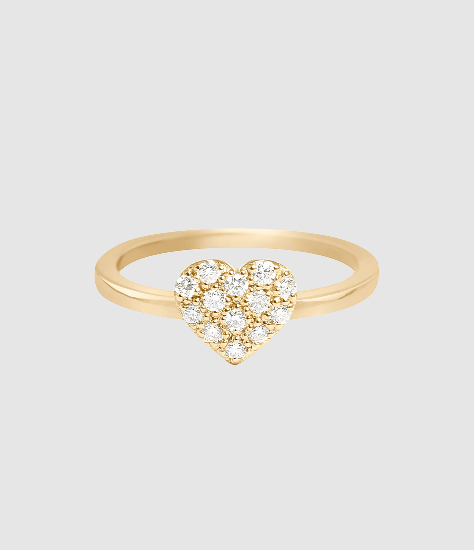 Bague fine en or jaune ornée d'un cœur serti de diamants.