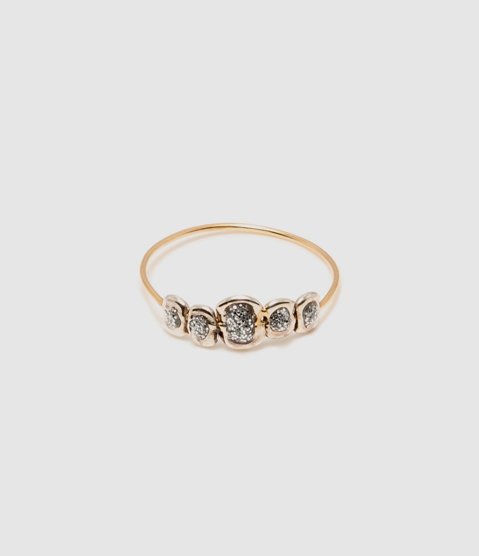 Bague sur fil d'or ornée de cinq pépites martelées serties d'émail diamanté.
