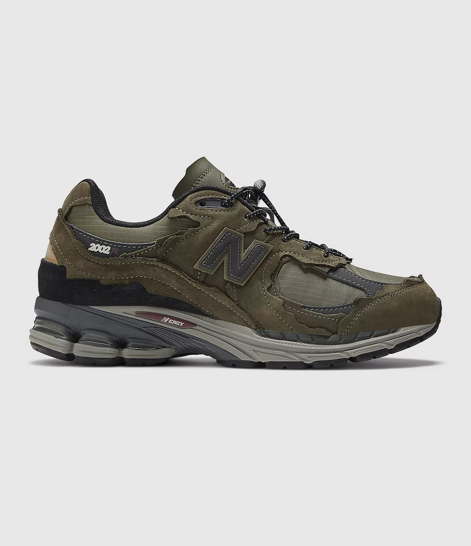 Baskets running pour femme, en cuir et toile vert. Lacets cordons noirs. Écusson "N" vert sur le côté.