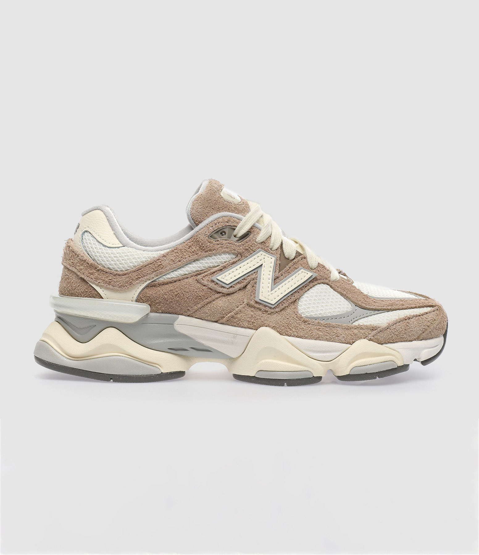 Baskets bi matière daim et mesh beige et écru. Lacets écrus. Tige en alveo mesh écru. Renfort talon en cuir écru et languette beige. Écusson du logo écru.