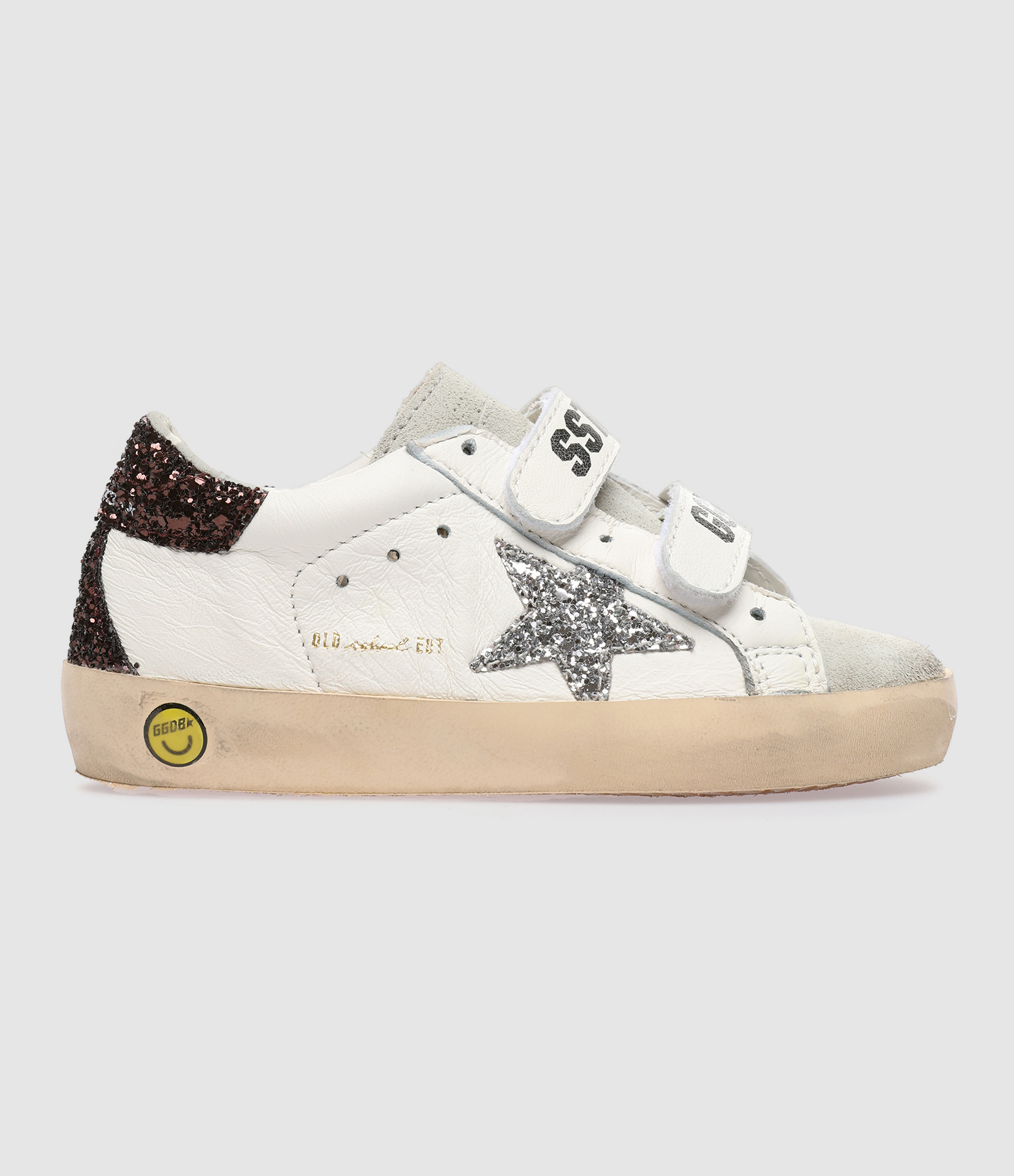 GOLDEN GOOSEBaskets Bébé Old School Cuir Blanc Argenté Café