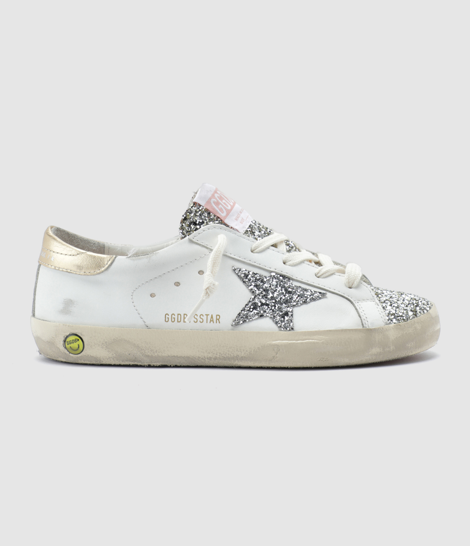 GOLDEN GOOSEBaskets Bébé Superstar Cuir Blanc Glitter Argenté Doré