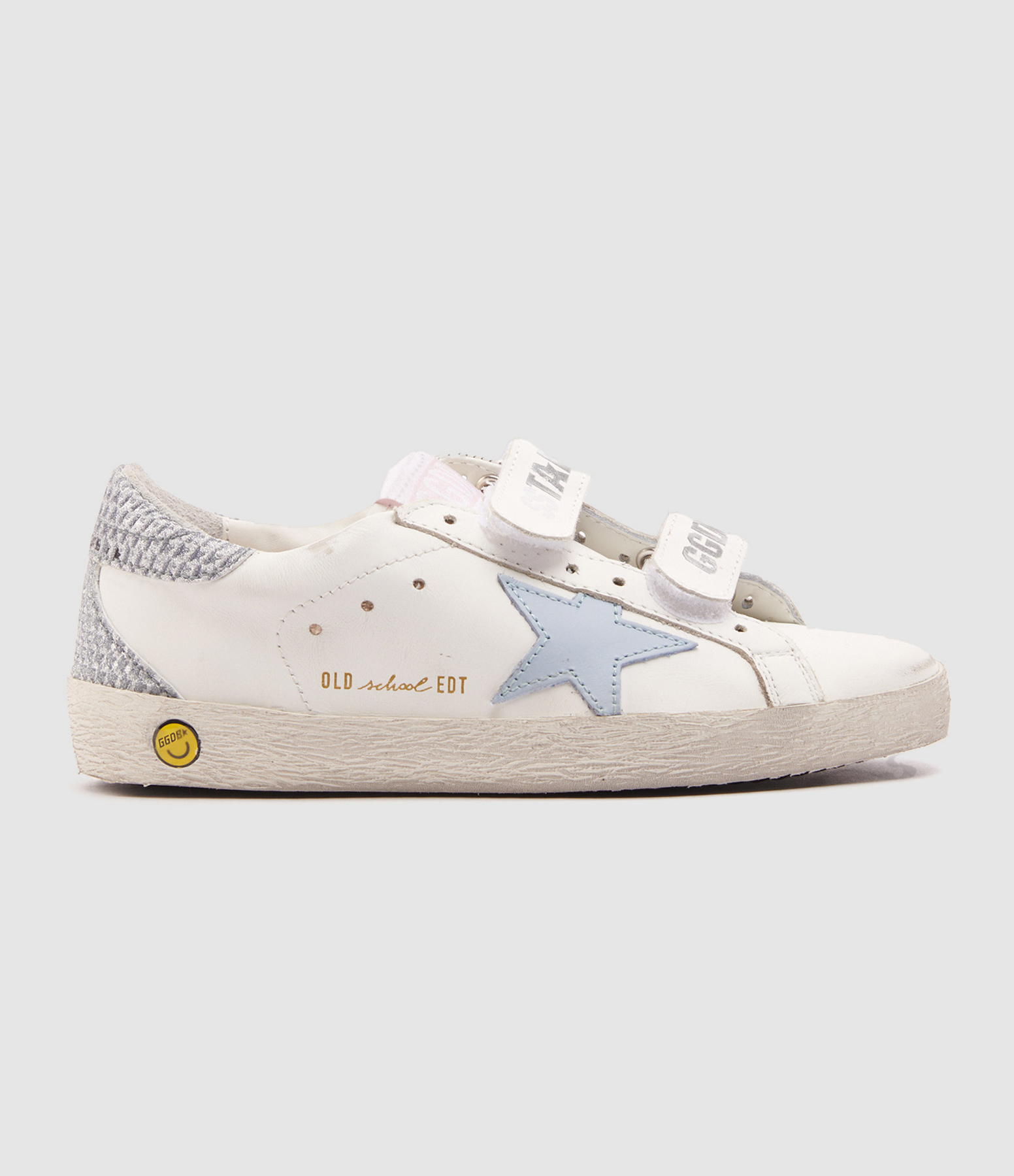GOLDEN GOOSEBaskets Enfant Old School Cuir Blanc Bleu Poudré Argenté