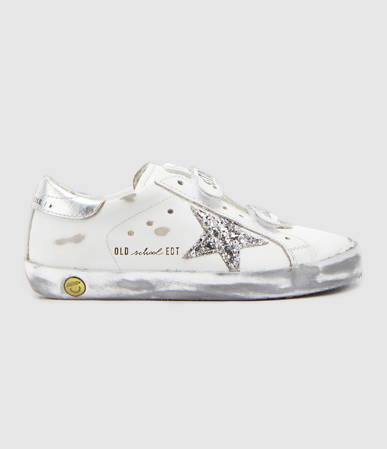 GOLDEN GOOSEBaskets Enfant Old School Cuir Blanc Glitter