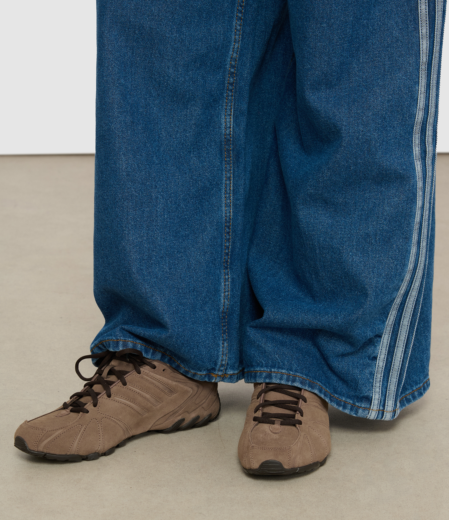 Baskets basses en cuir suédé marron. Fermeture à lacets. Tige en suède moulé. Doublure synthétique et textile. Semelle extérieure en caoutchouc.
