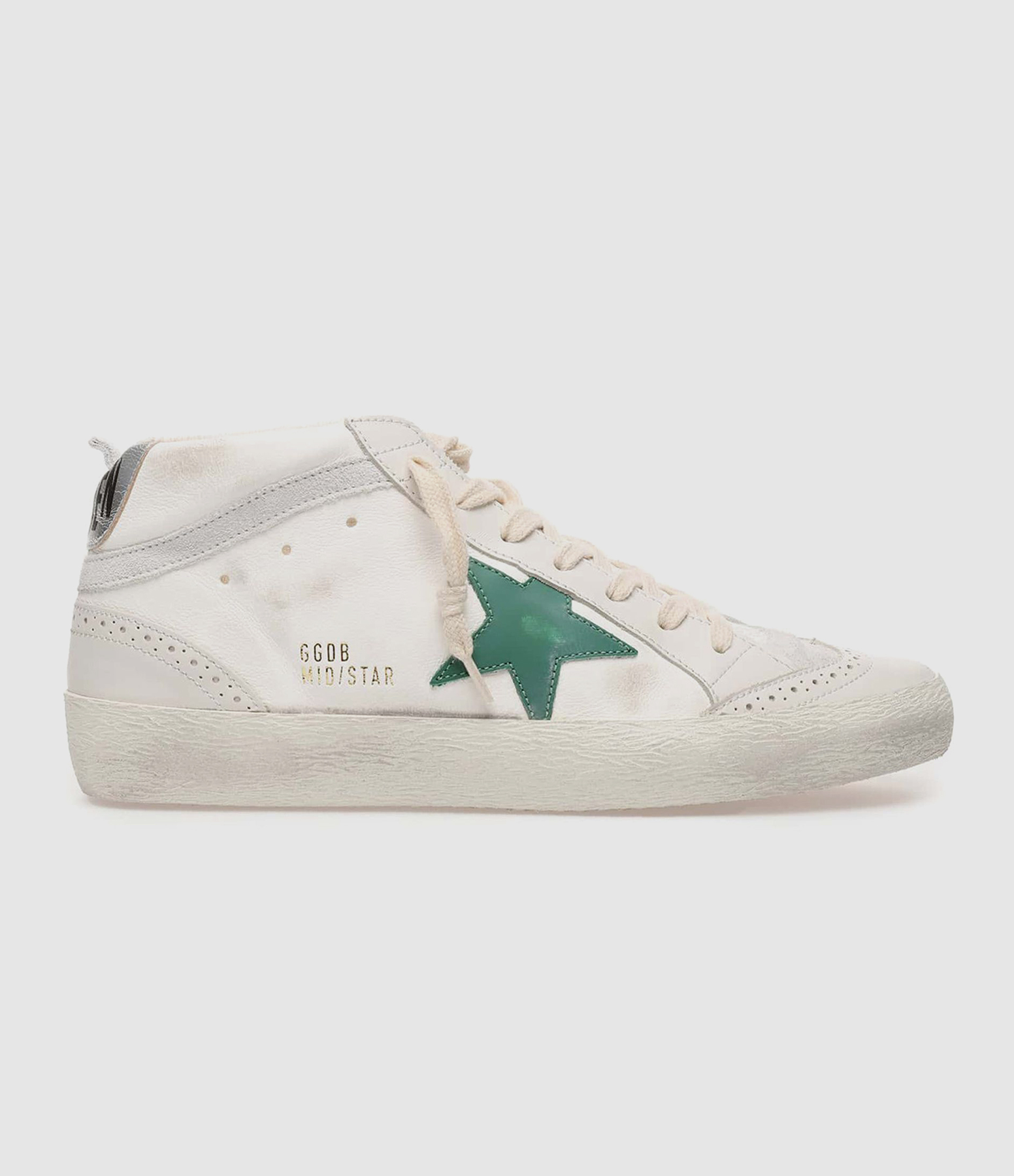 Baskets Homme Mid Star Cuir Crème Vert Argenté