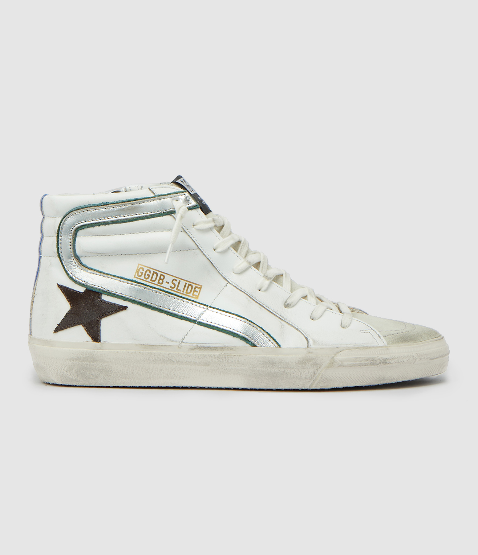GOLDEN GOOSEBaskets Homme Slide Cuir Blanc Noir Argenté