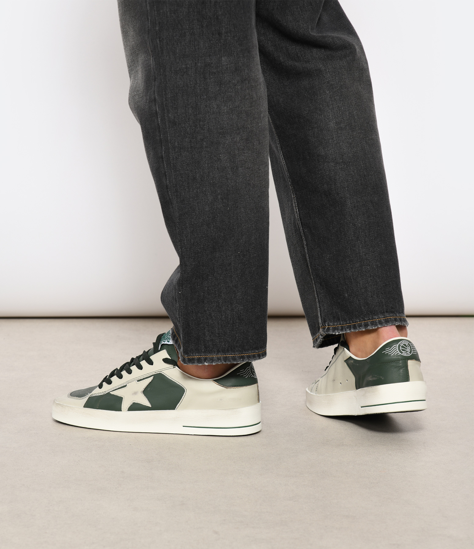 GOLDEN GOOSEBaskets Homme Stardan Cuir Laminé Vert Blanc