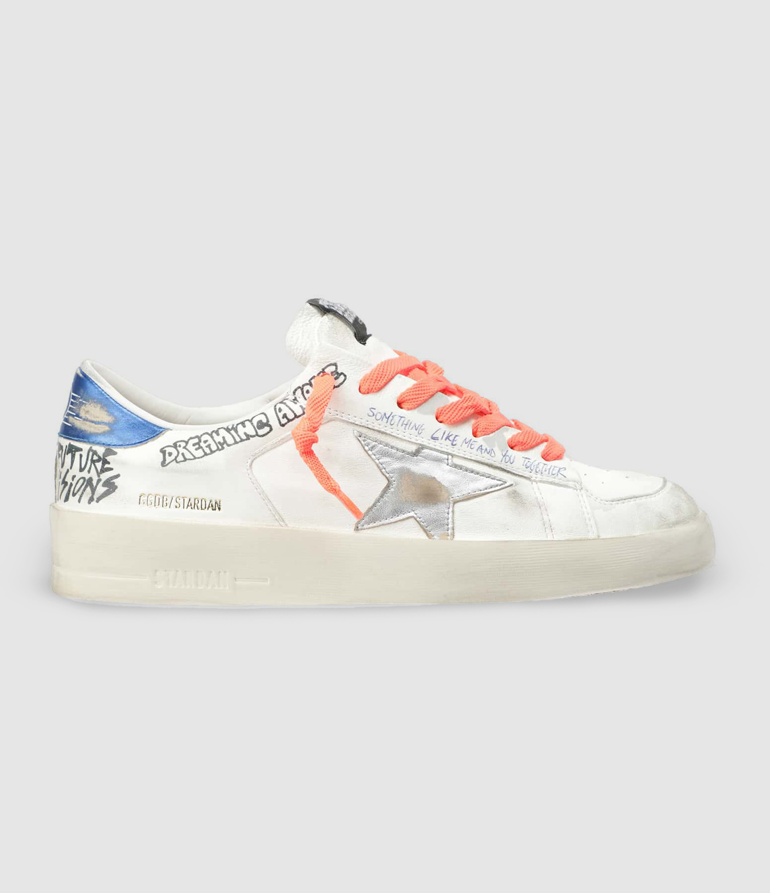 GOLDEN GOOSEBaskets Homme Stardan Sérigraphie Cuir Blanc Bleu