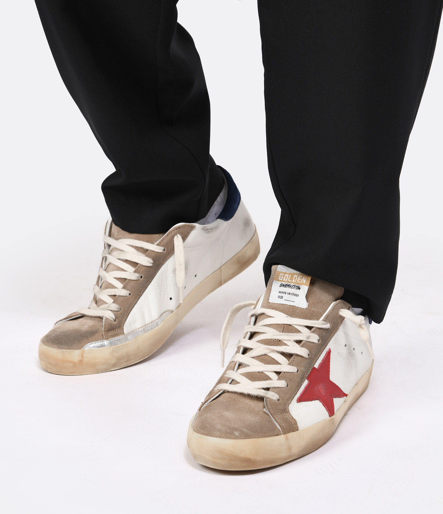 GOLDEN GOOSEBaskets Homme Superstar Cuir Blanc Rouge Tabac