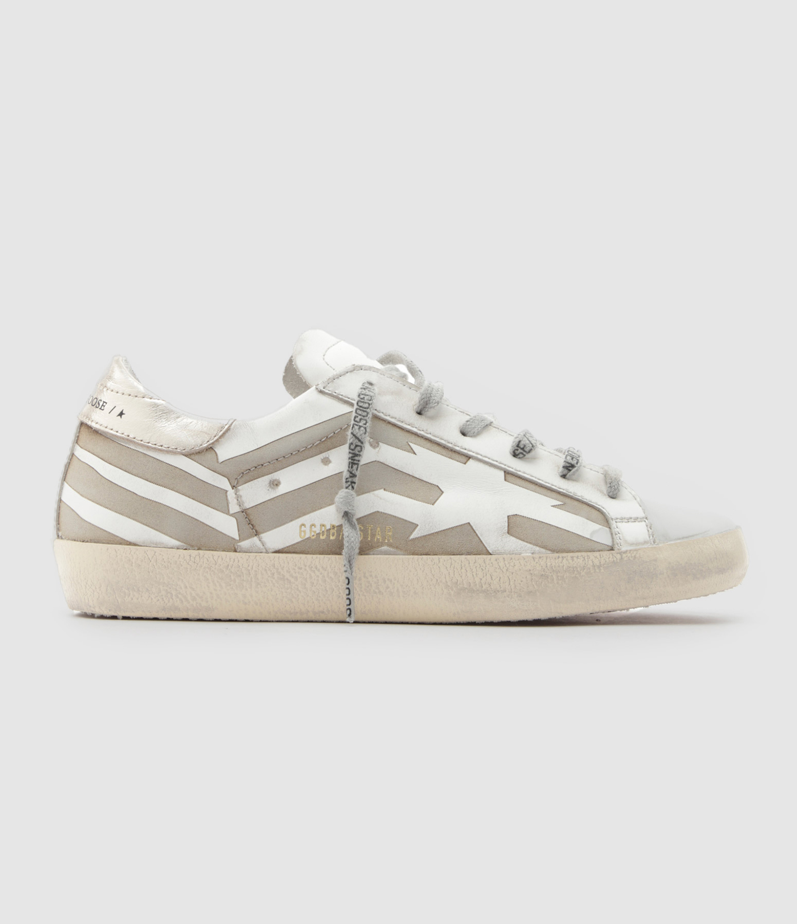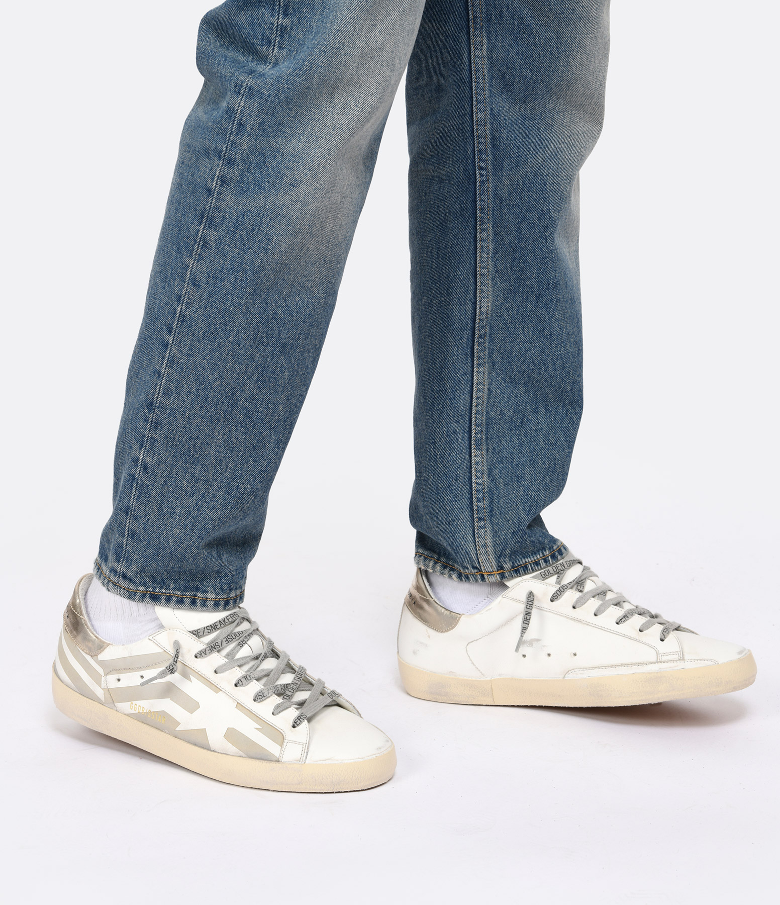 GOLDEN GOOSEBaskets Homme Superstar Drapeau Cuir Blanc Platinum