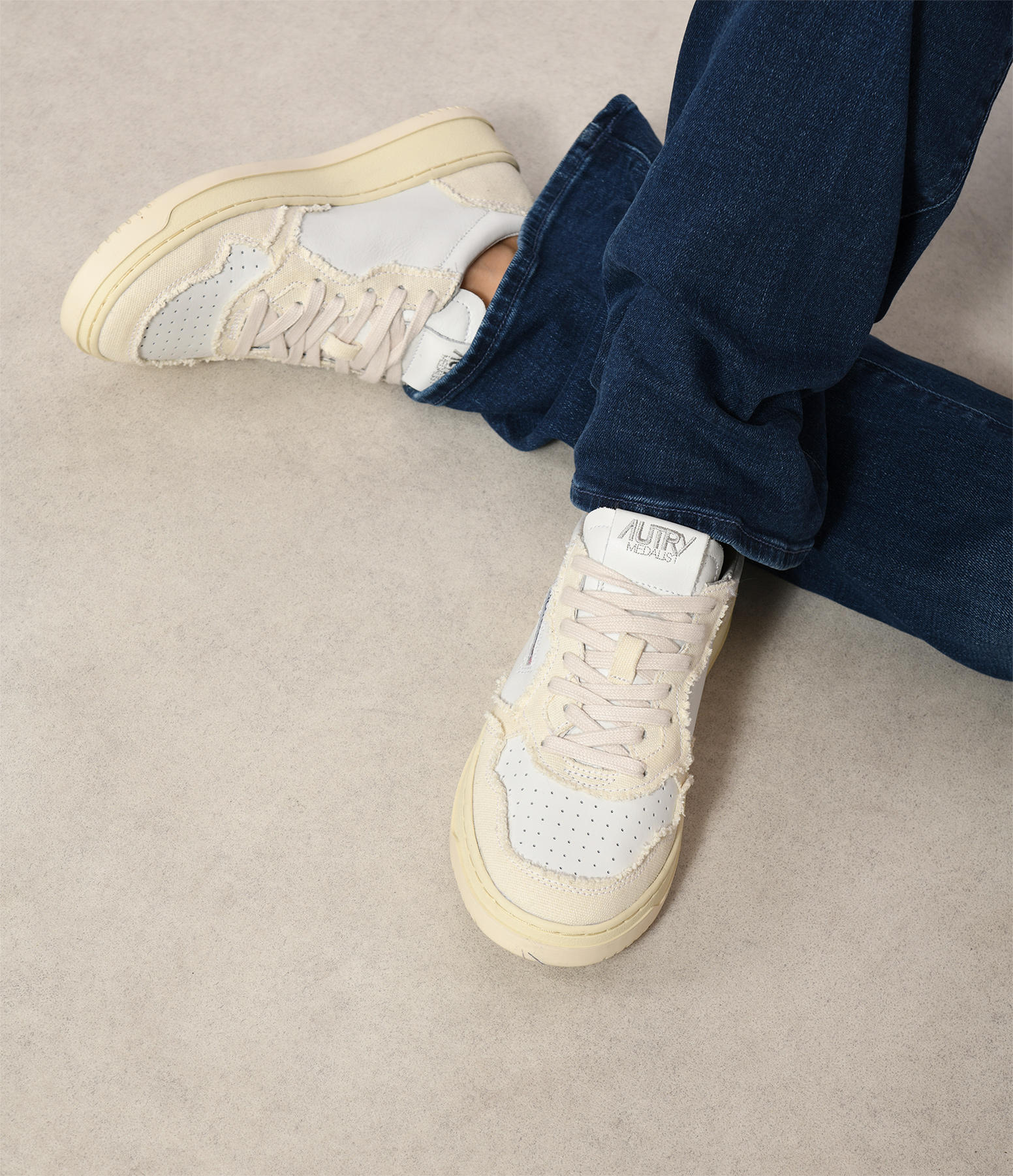 AUTRYBaskets Medalist Cuir Blanc, Denim Ivoire
