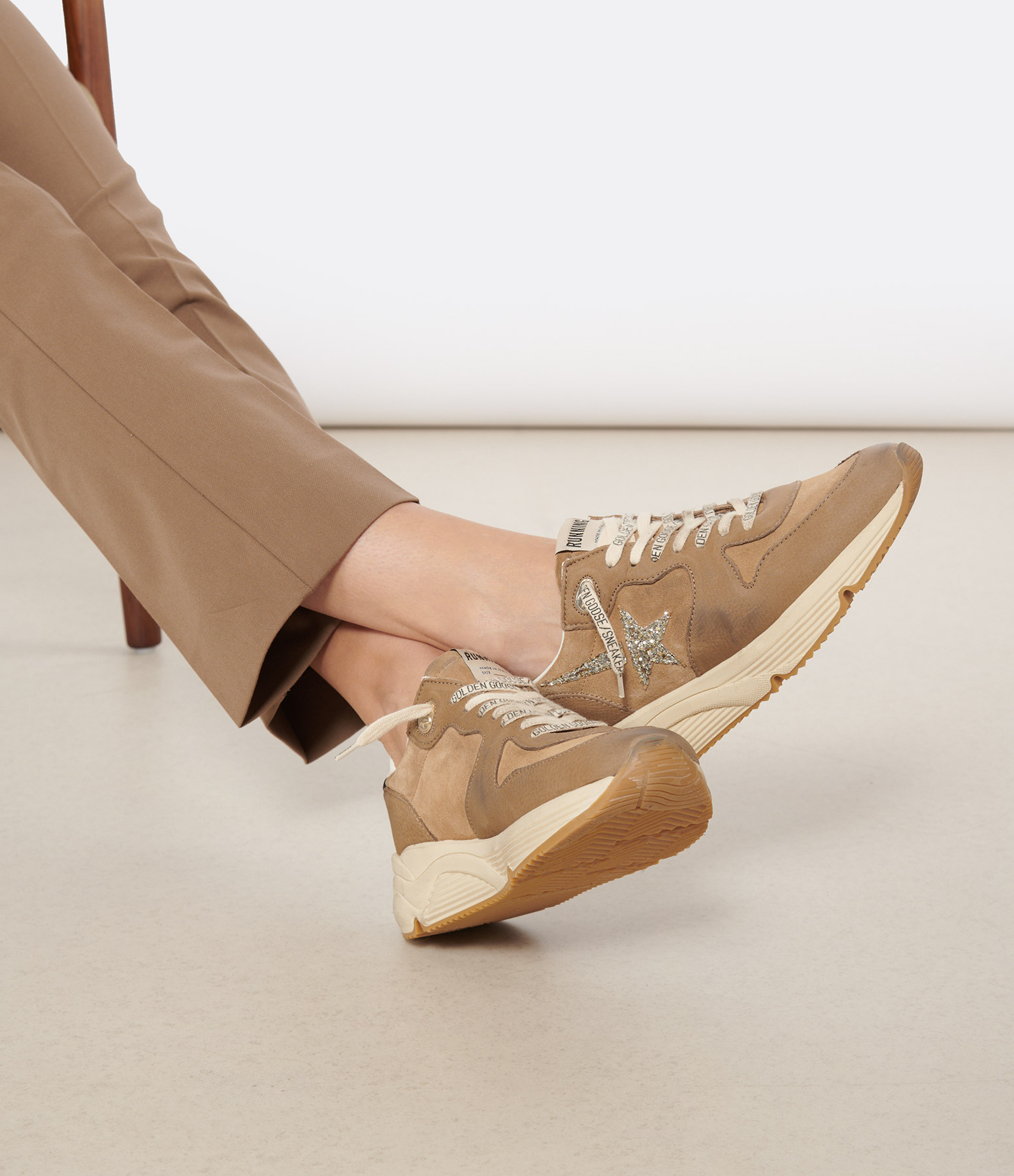 GOLDEN GOOSEBaskets Running Sole Argenté Tabac Taupe