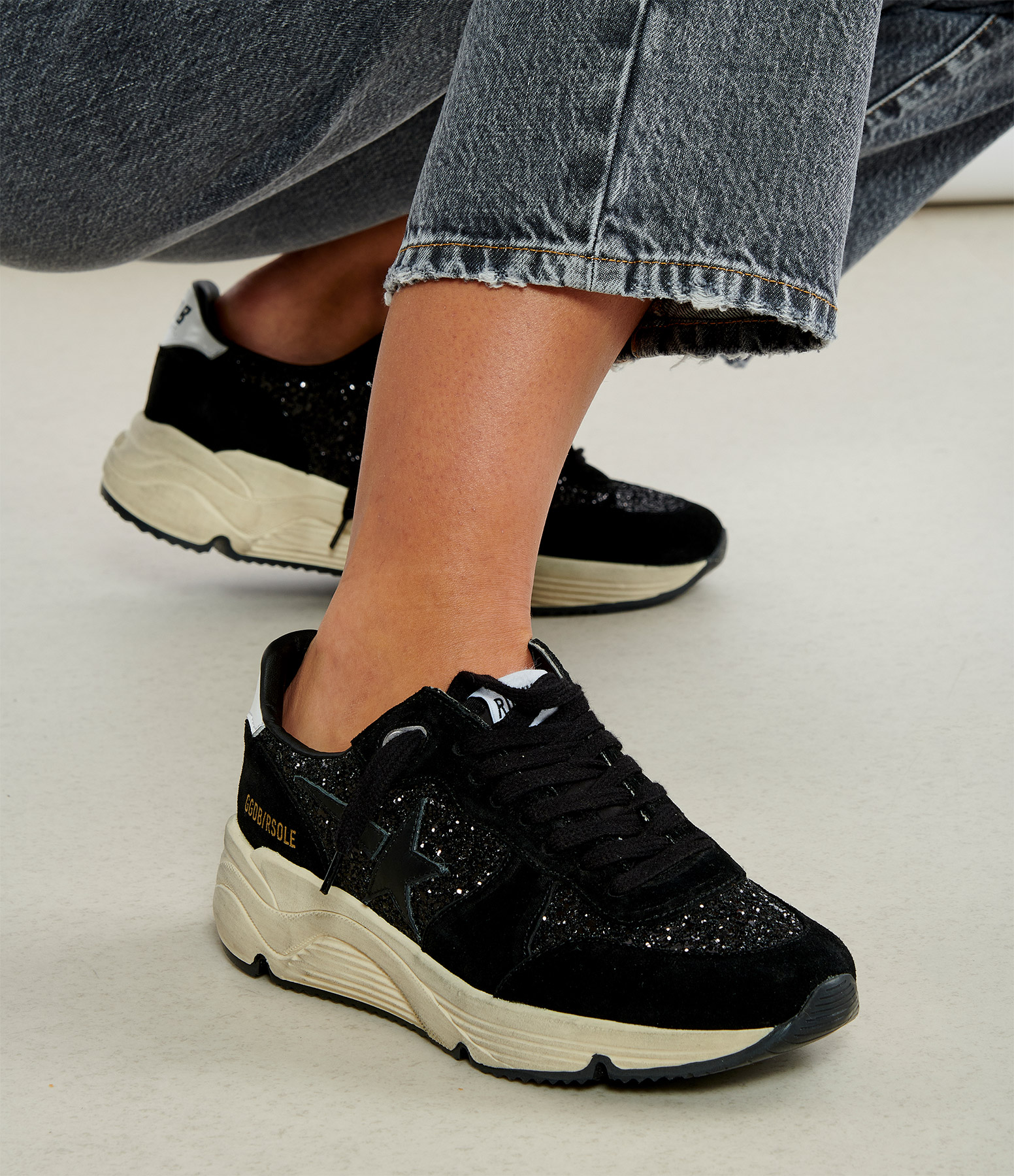 GOLDEN GOOSEBaskets Running Sole Étoile Glitter Noir Blanc
