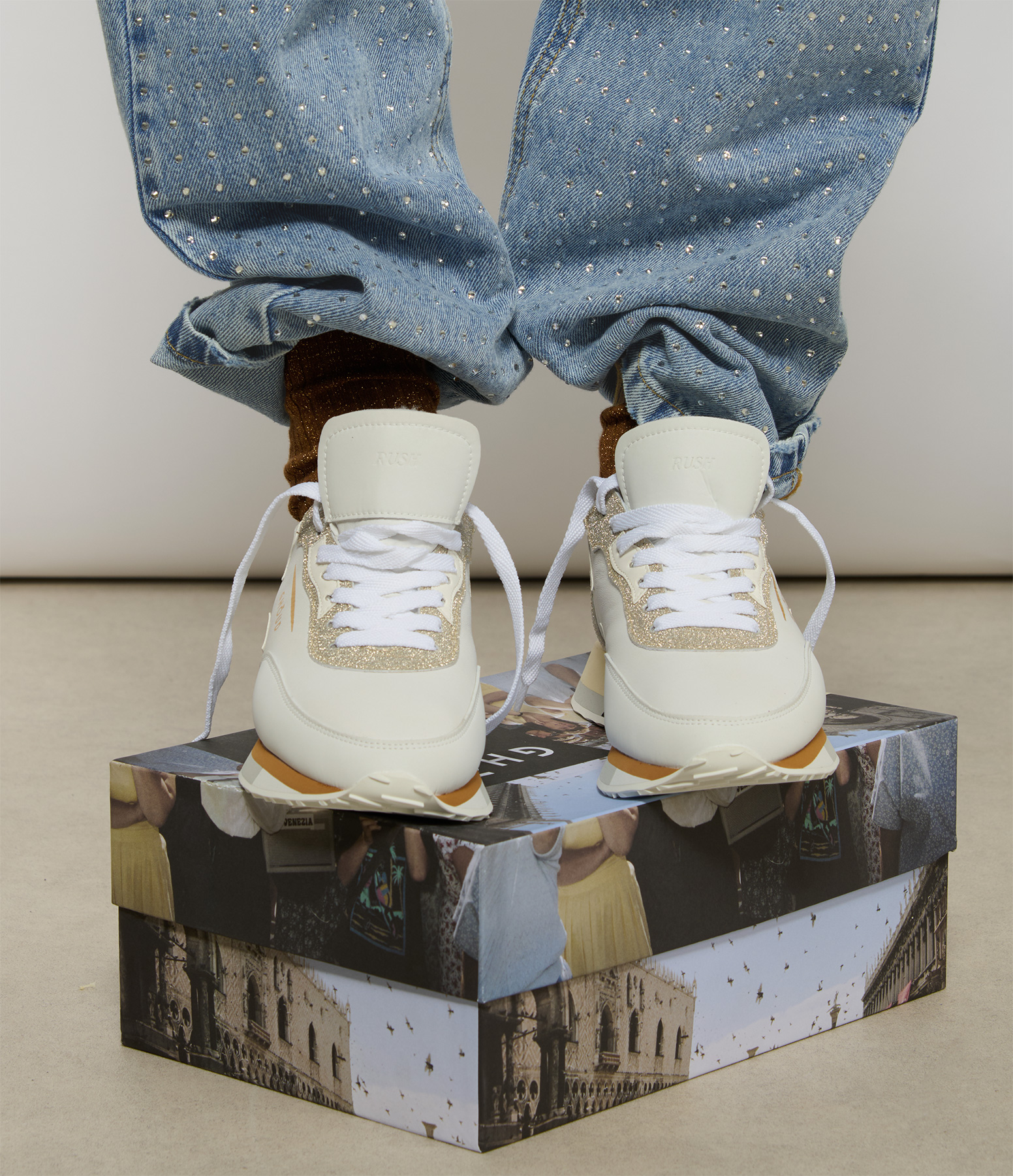 GHOUD VENICEBaskets Rush Multi Low Wom Leat Py Glt Wht Gold Fur
