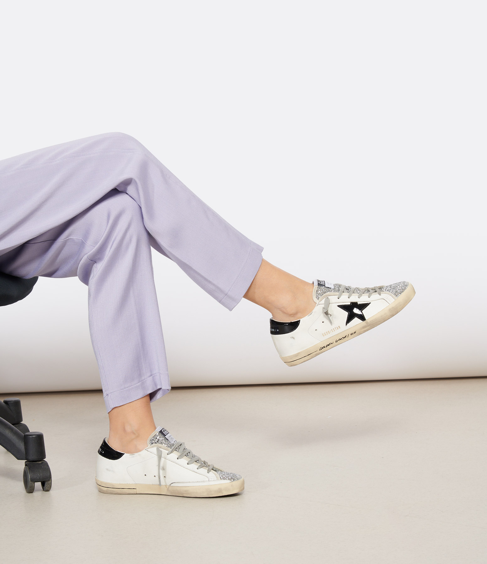 GOLDEN GOOSEBaskets Super-Star Blanc Noir Argenté