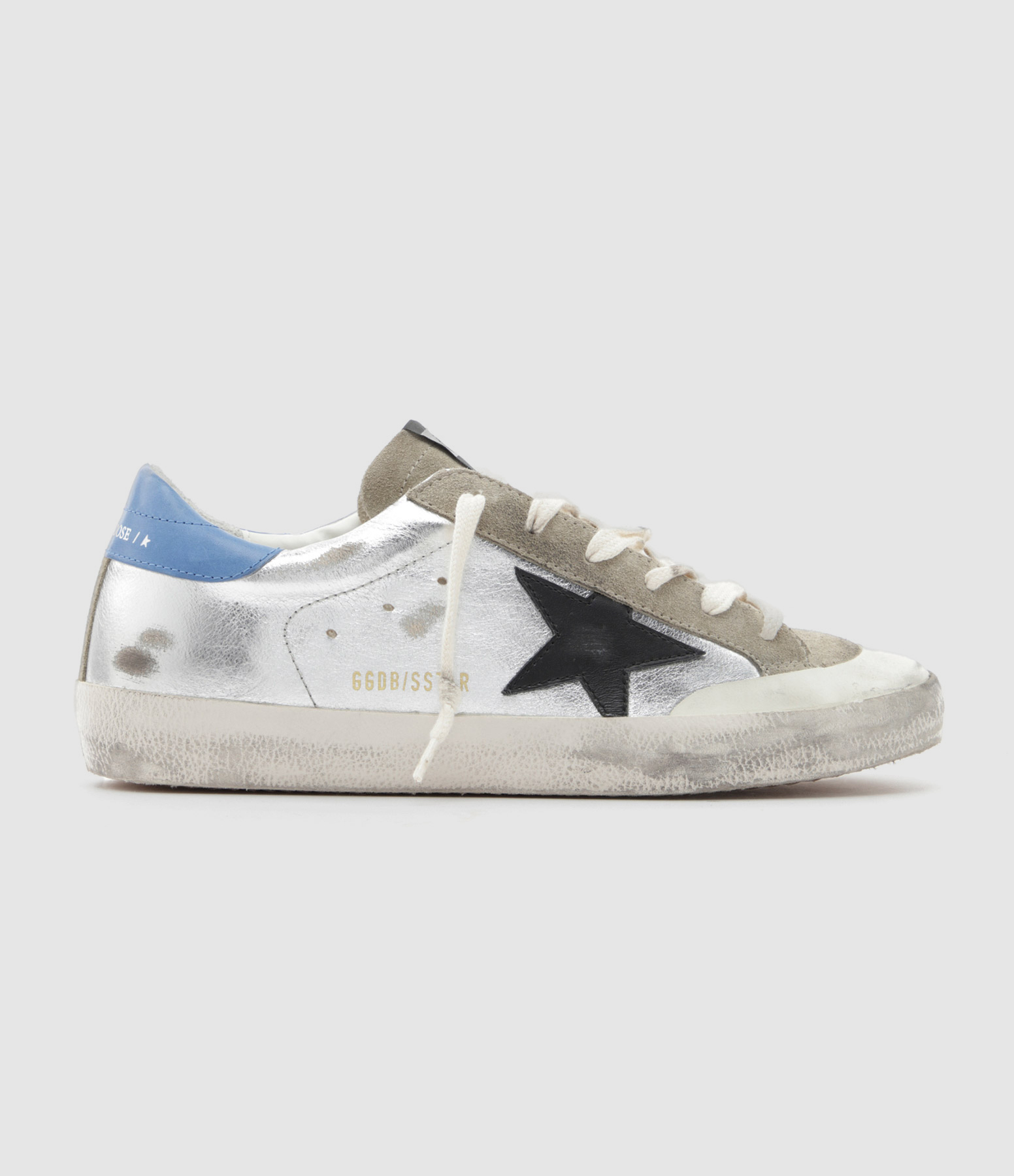 GOLDEN GOOSEBaskets Super-star Cuir Argenté Taupe Bleu Cobalt
