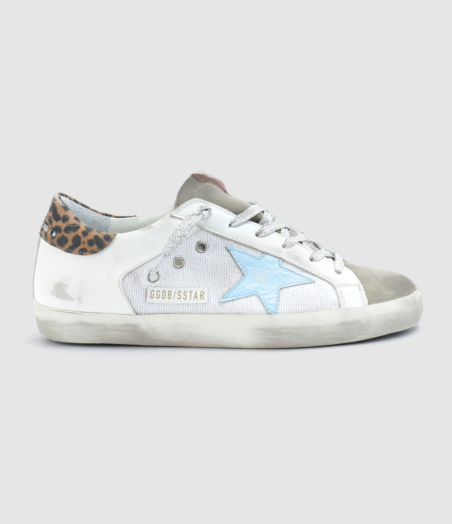 GOLDEN GOOSEBaskets Super-star Cuir Blanc Bleu Léopard
