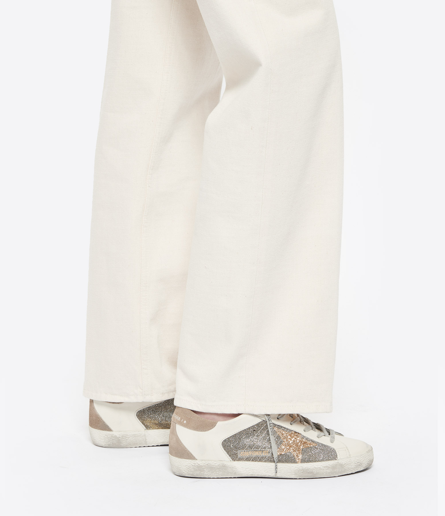 Baskets Super-star Cuir Blanc Doré Taupe, Exclusivité Lulli