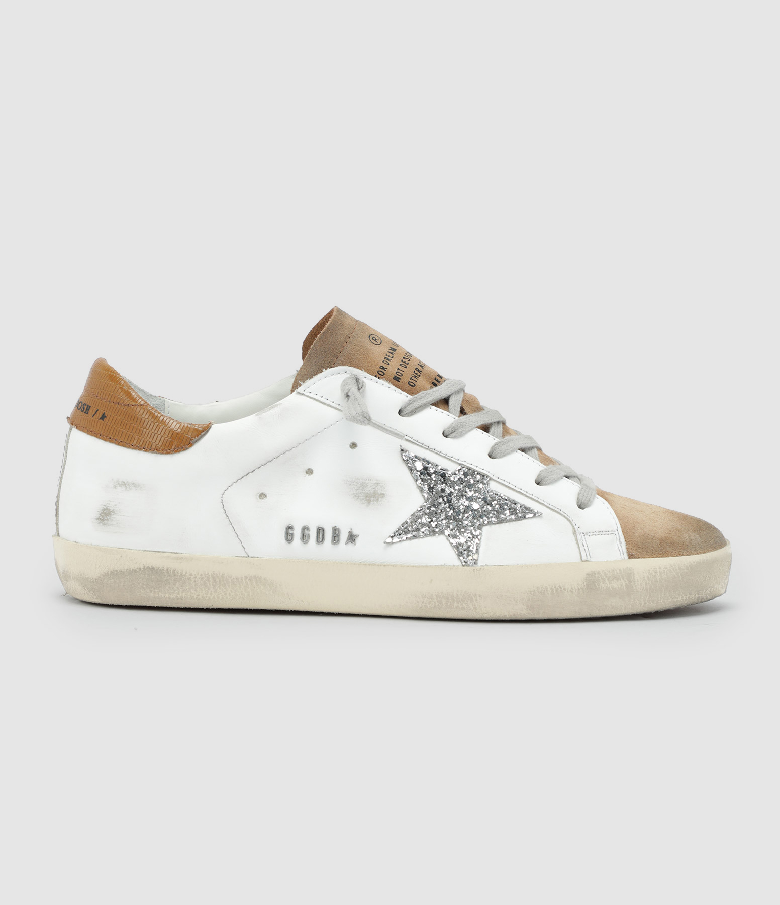 GOLDEN GOOSEBaskets Super-star Cuir Blanc Glitter Marron