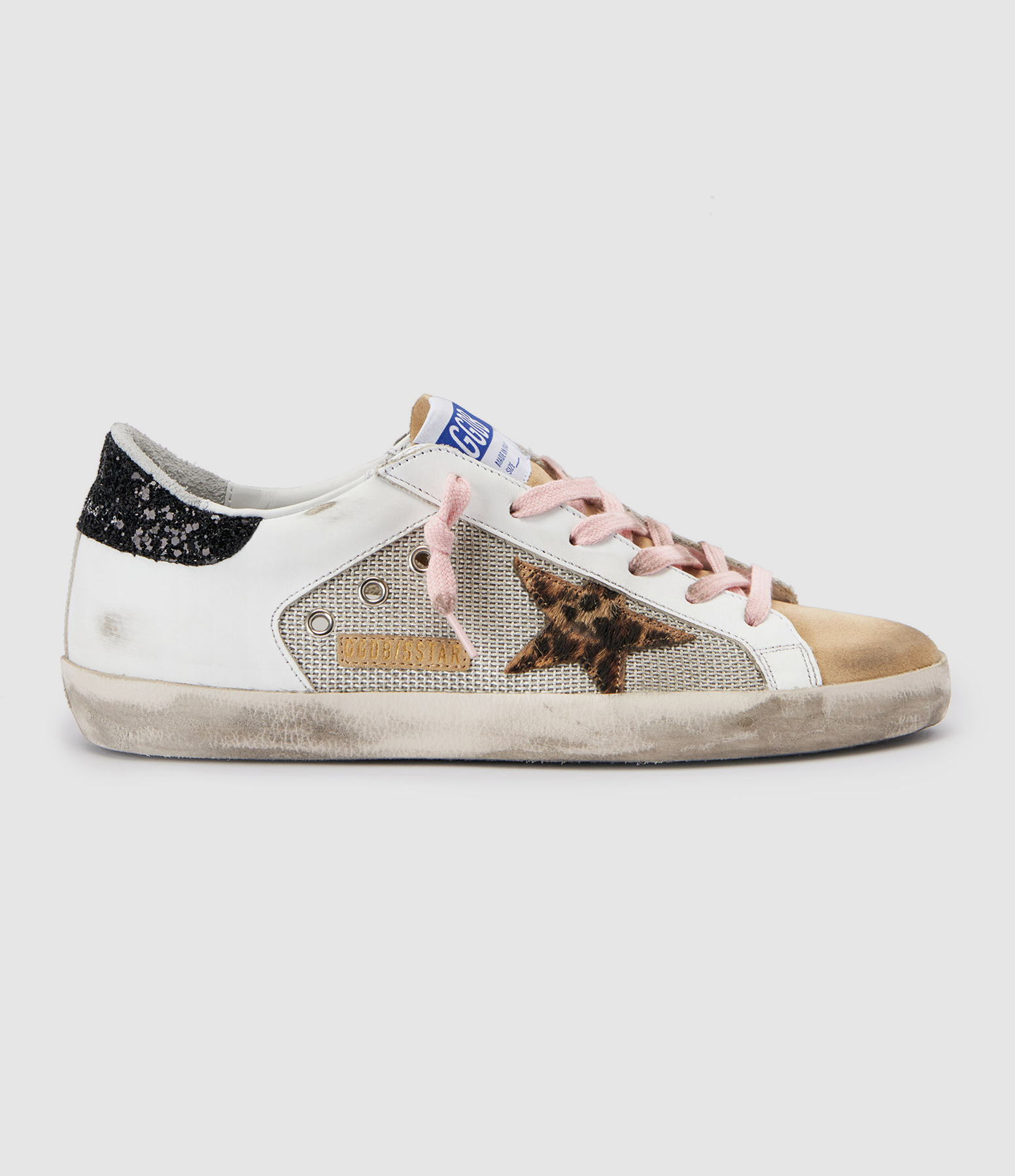 GOLDEN GOOSEBaskets Super-star Cuir Blanc Léopard Glitter Noir