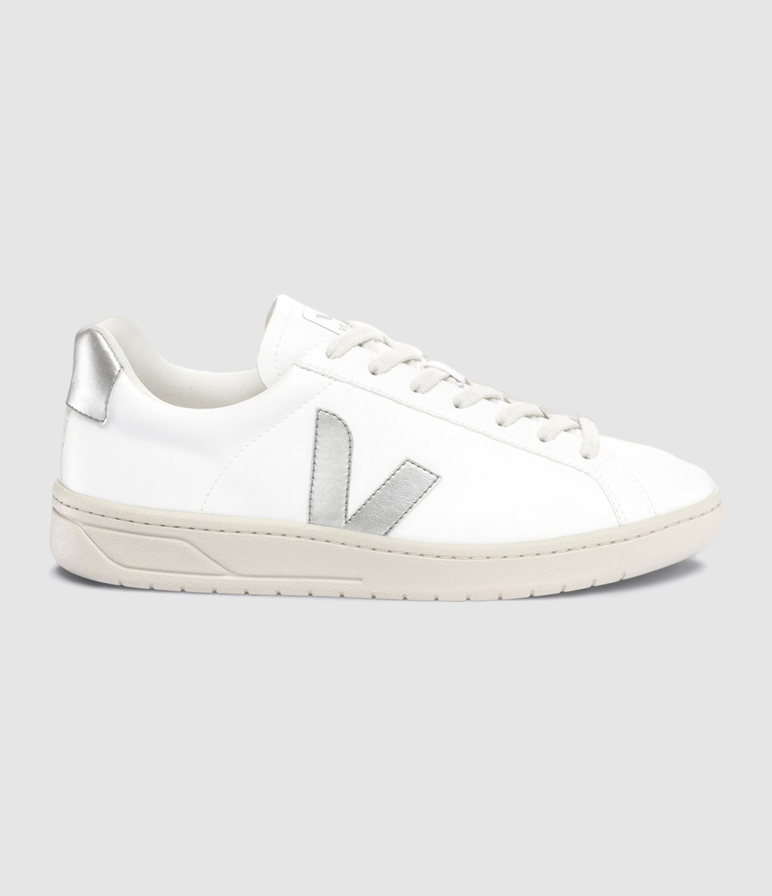 Baskets basses à lacets en C.W.L blanc. Logo latéral "V" et renfort talon en cuir lisse argenté.