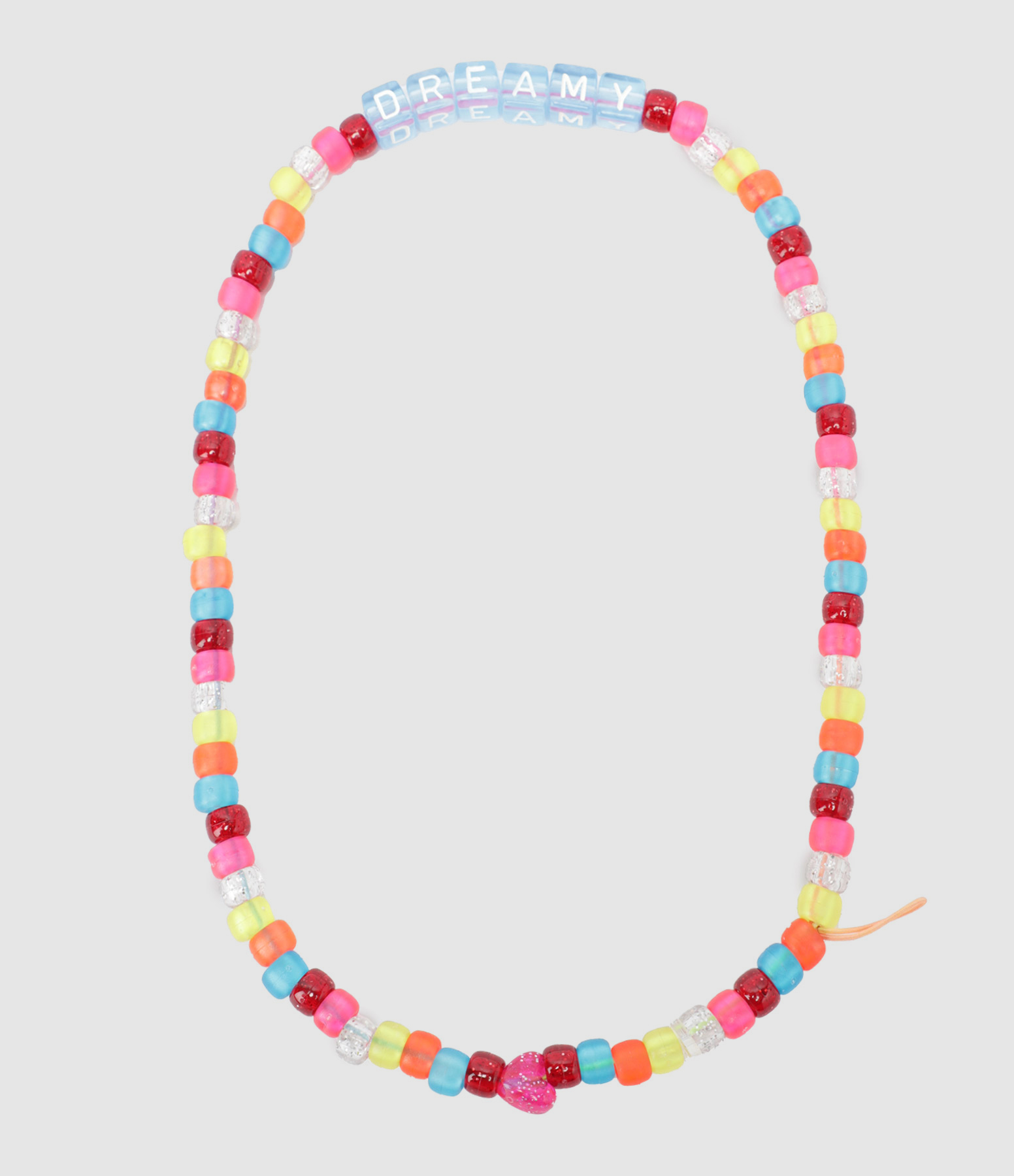 Bijou de téléphone à accrocher en perles multicolores. Perles formant le mot "DREAMY".