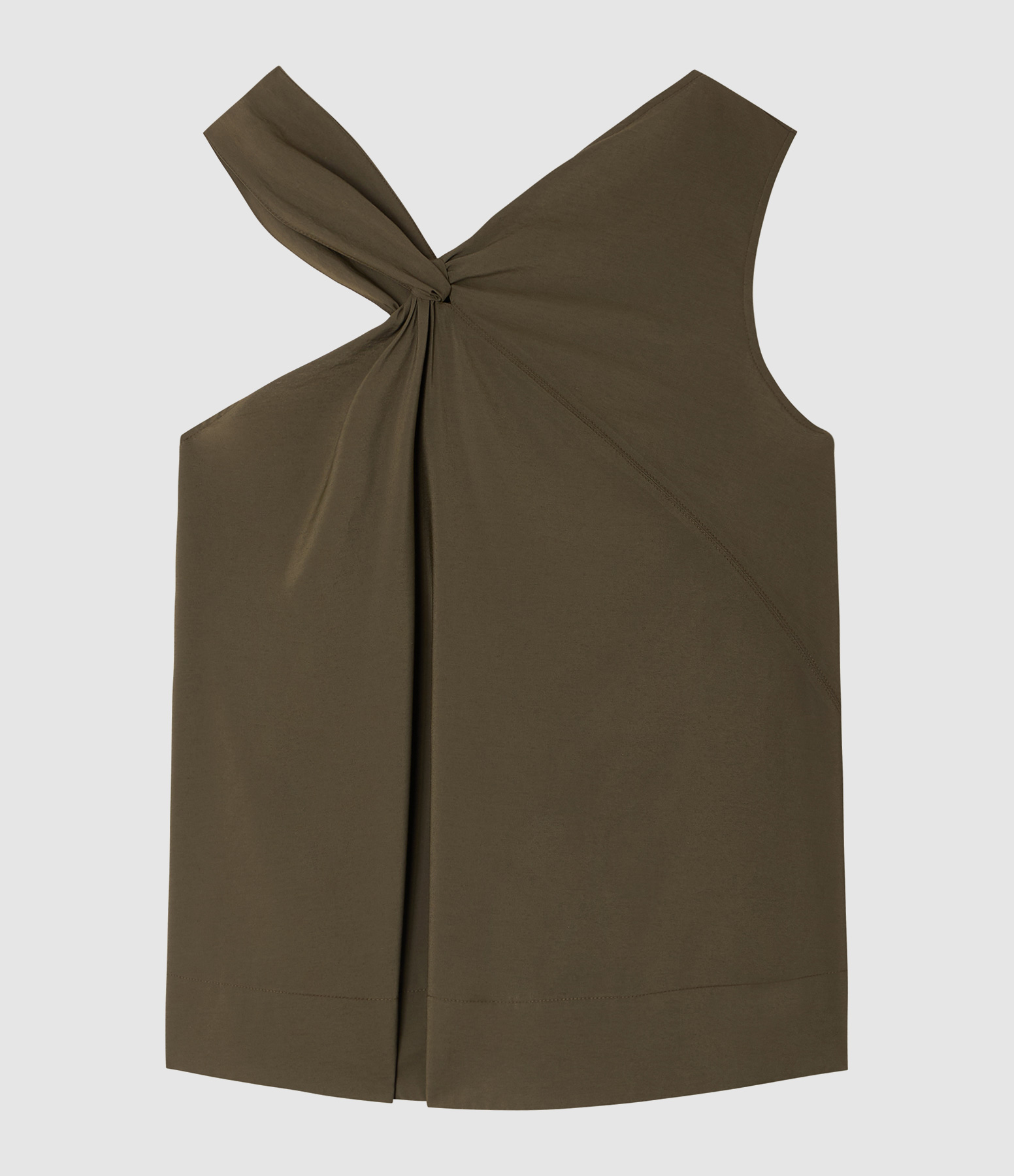 Top asymétrique avec nœud sur le devant. Ouverture sur le côté par un zip invisible.