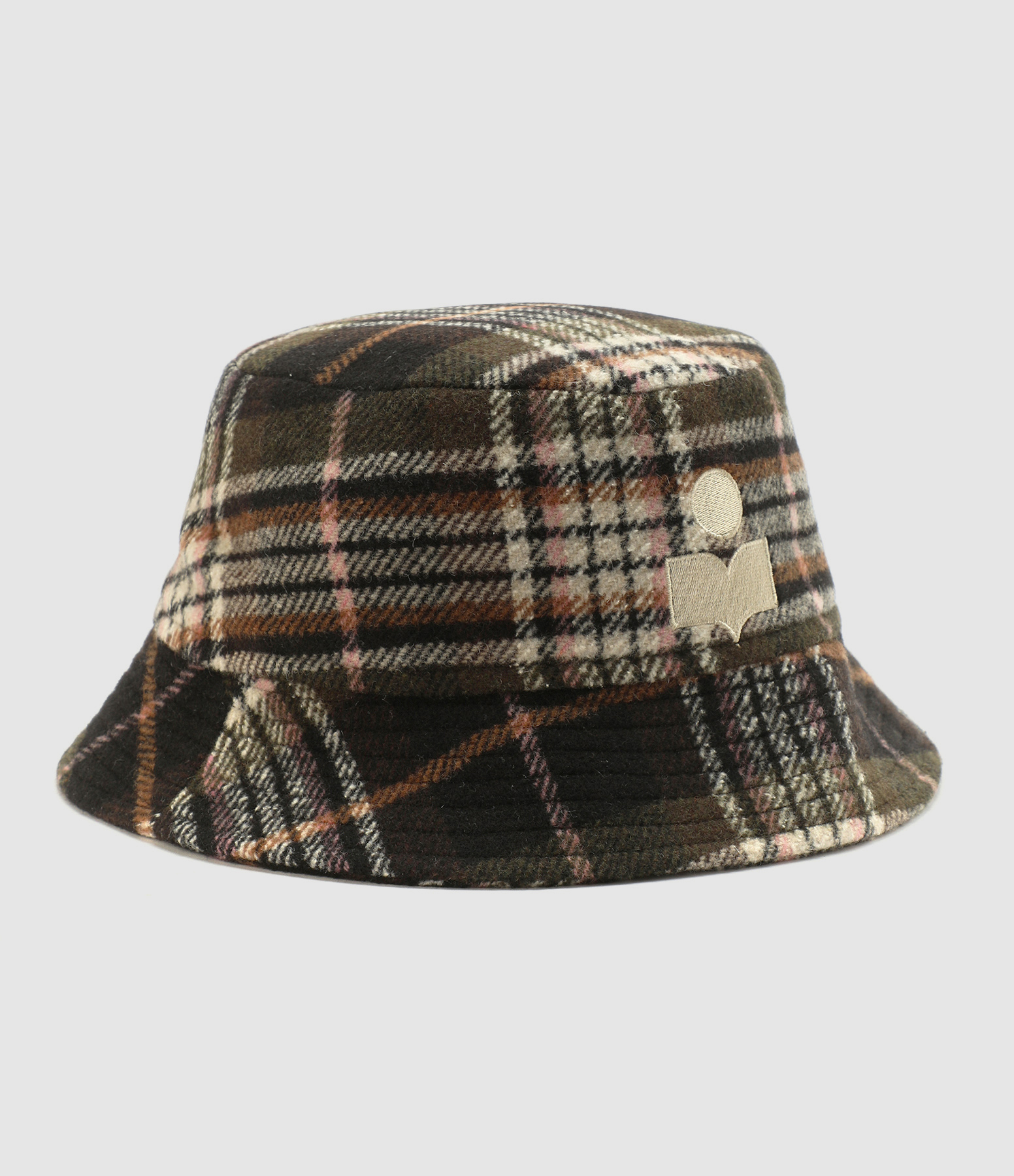 Bob à carreaux vert foncé en laine mélangée. Logo de la marque brodé sur le côté. Intérieur entièrement doublé.