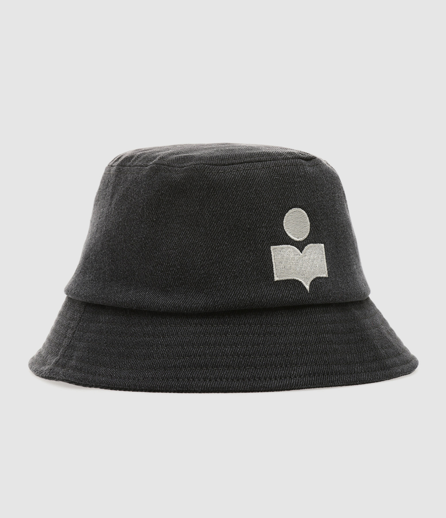 Chapeau bob en coton gris foncé. Logo de la marque brodé blanc sur le côté. Intérieur entièrement doublé.
