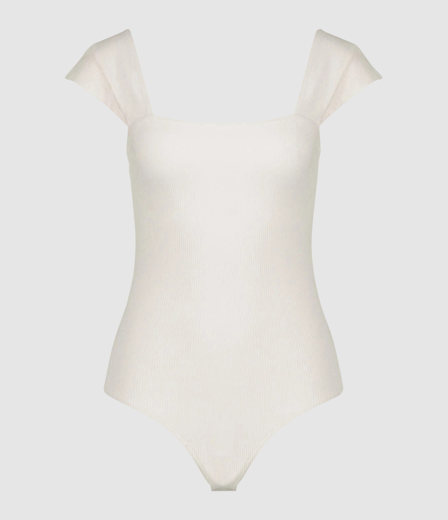 Body côtelé col carré avec petites manches. Fond du body coupe tanga avec fermeture du body par un système de pressions.