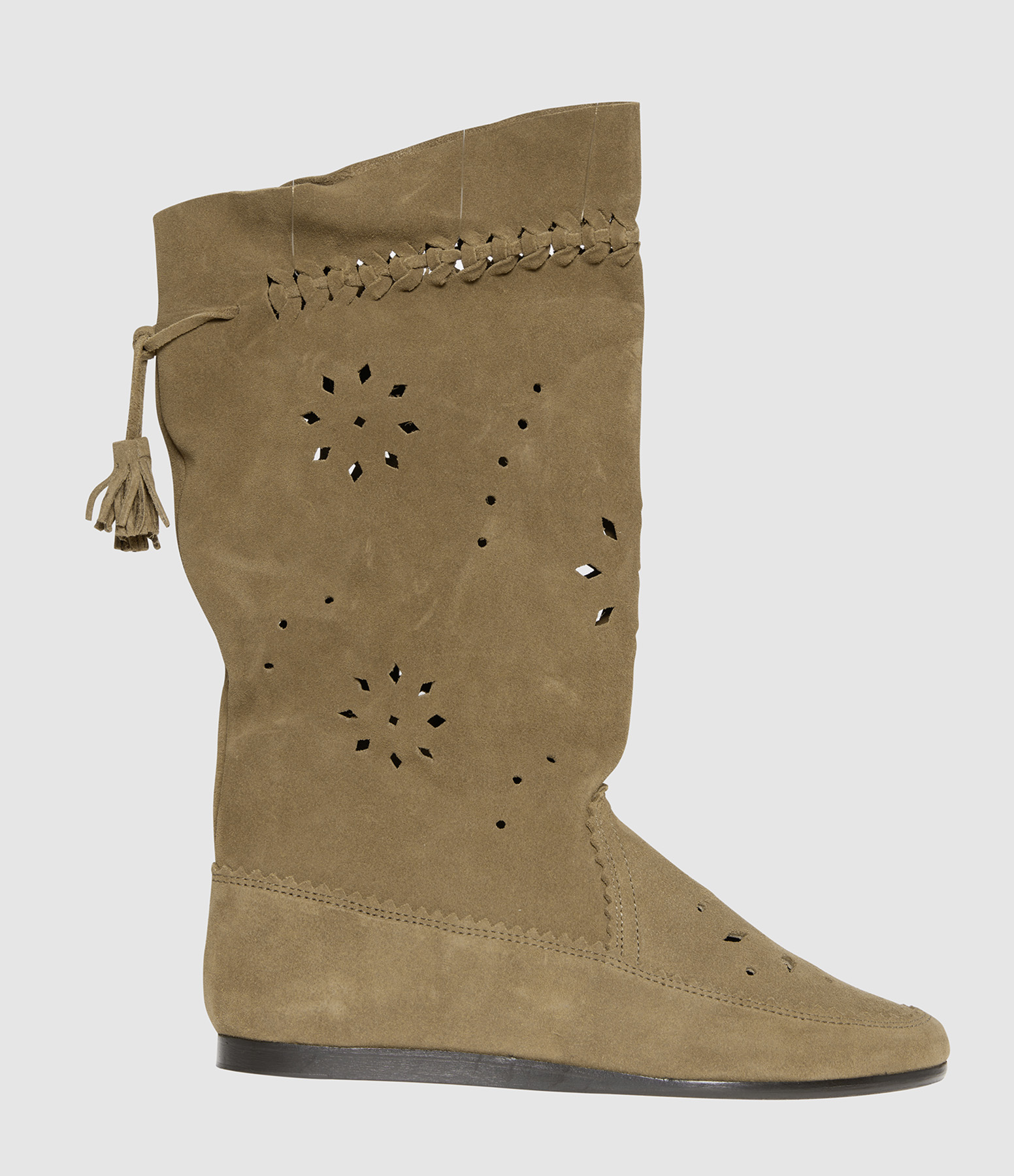 Bottes plates Tige haute souple Tressage avec pompons Bout arrondi Semelles extérieure et intérieure en cuir Doublure en cuir