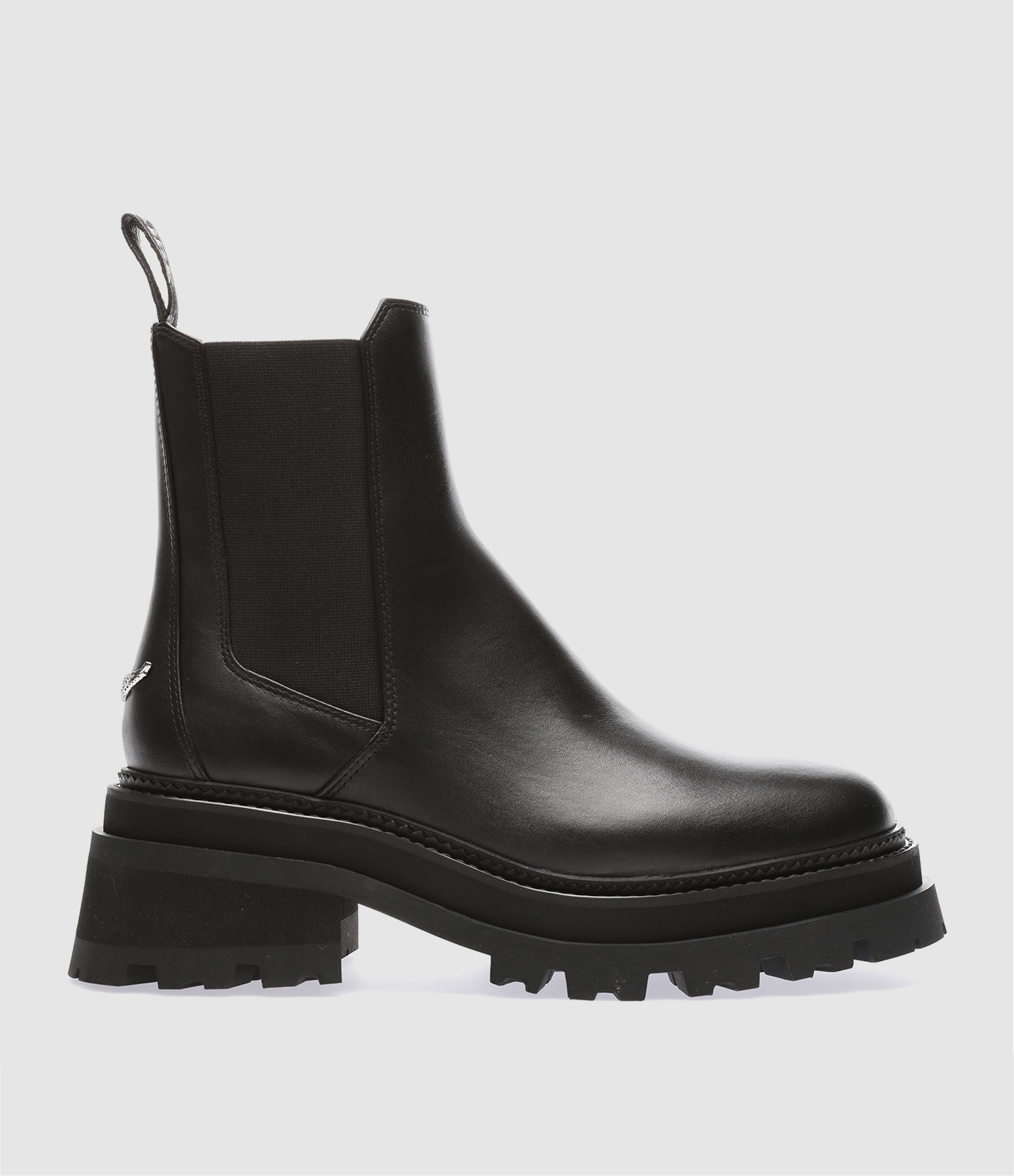 Bottines Chelsea en cuir ciré noir. Empiècement élastique sur les côtés. Logo ailes en métal argenté sur la tige. Semelle épaisse en caoutchouc.