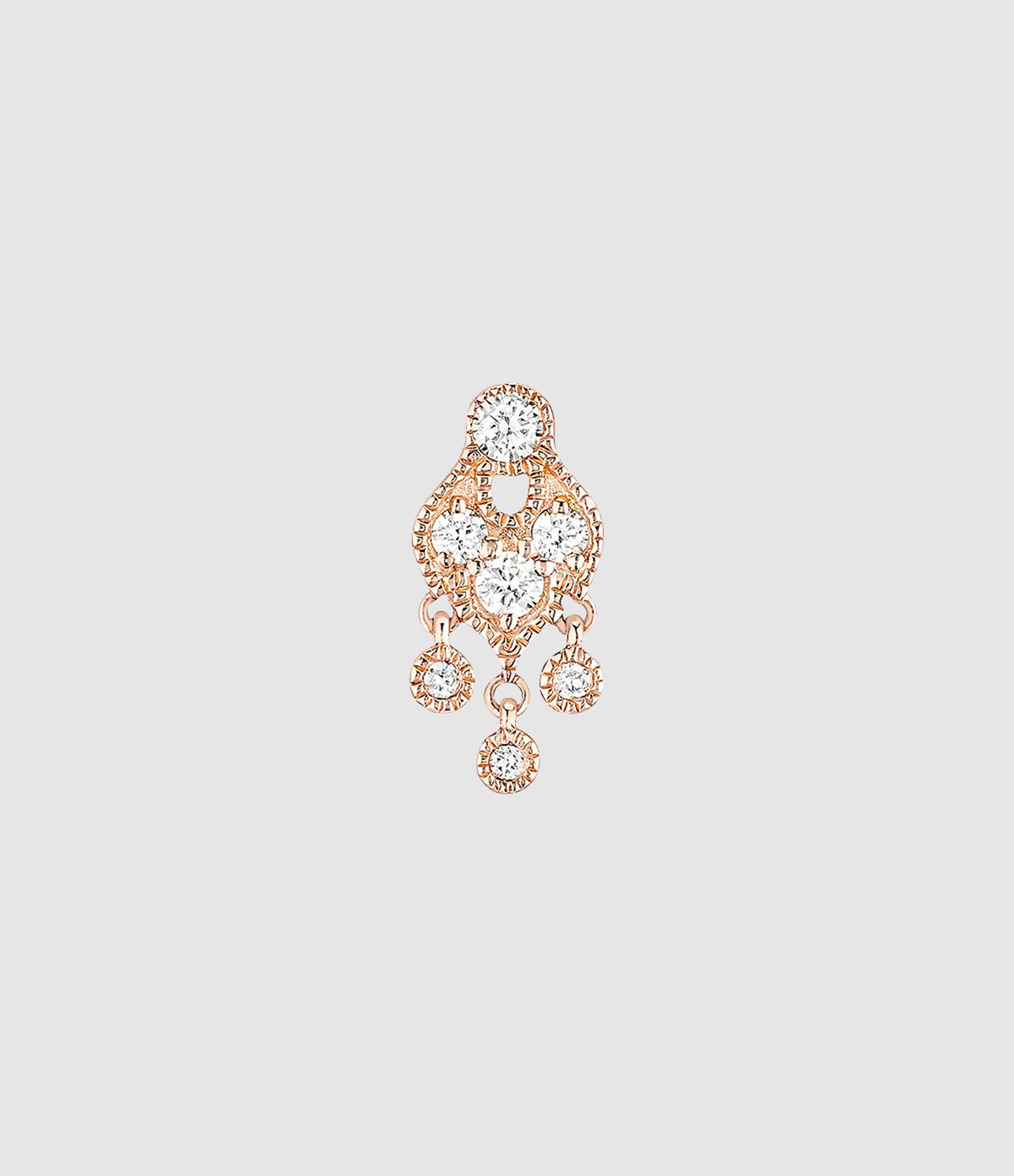 Boucle d'oreille avec motif décoré de pampilles en or jaune, rose, blanc ou noir ornée de sept diamants blancs.