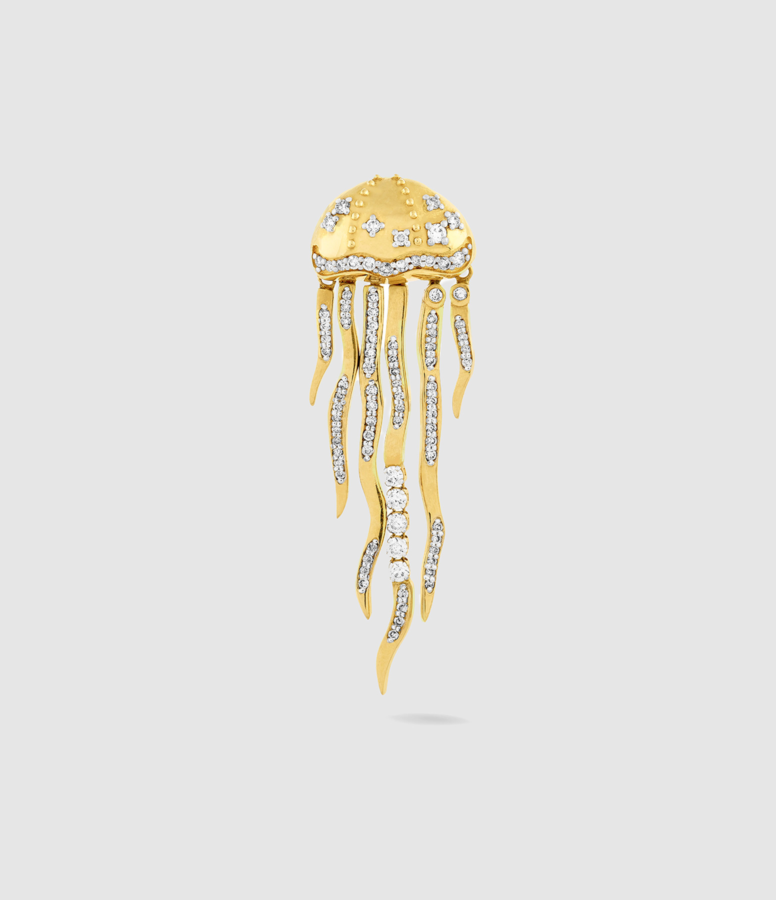 Mono boucle en or jaune serti de diamants en forme de méduse.
