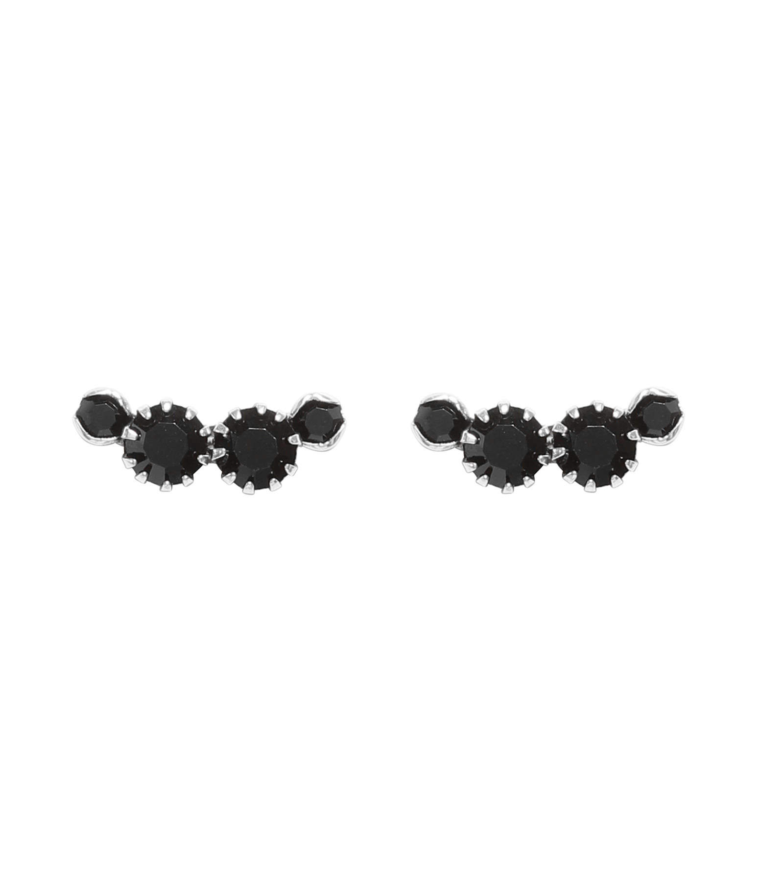 Boucles d'oreilles argentées en laiton et quatre pierres en verres noires. Fermoir poussette. Vendues à la paire.