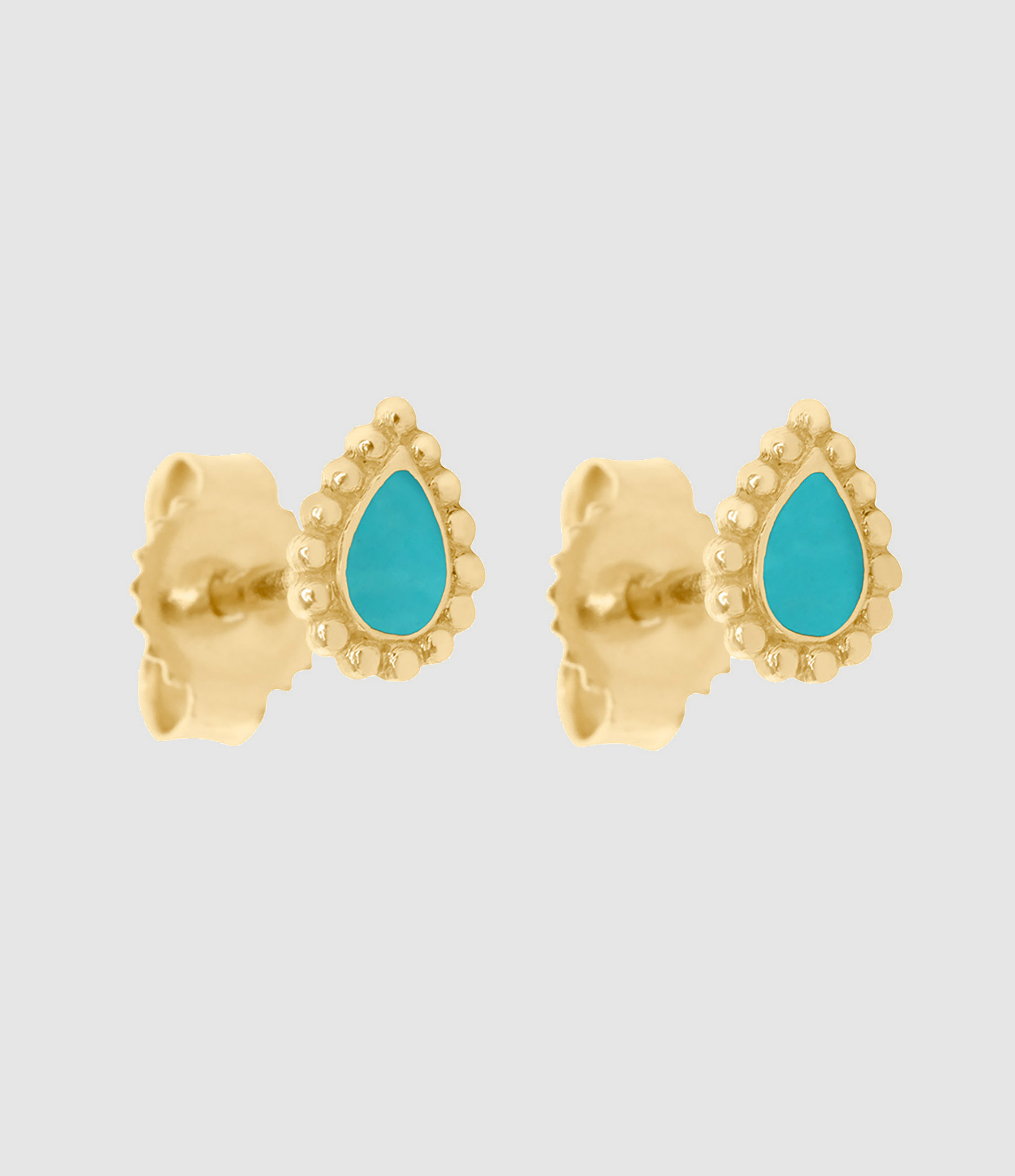 Boucles d'oreilles puces en or rose. Modèle "goutte". Fermoir poussette. Vendues à la paire.