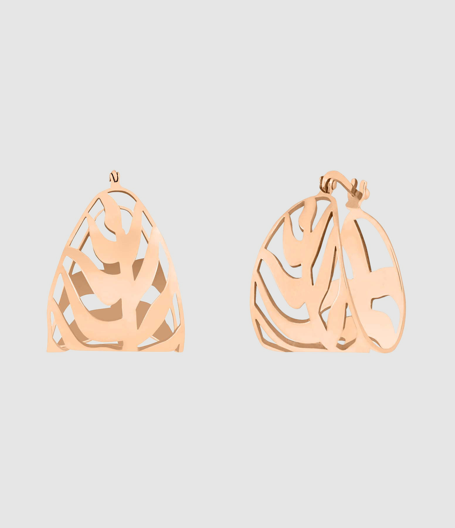 Boucles d'oreilles créoles en or rose en forme de feuille de palmier. Fermoir cliquet. Vendues à la paire.
