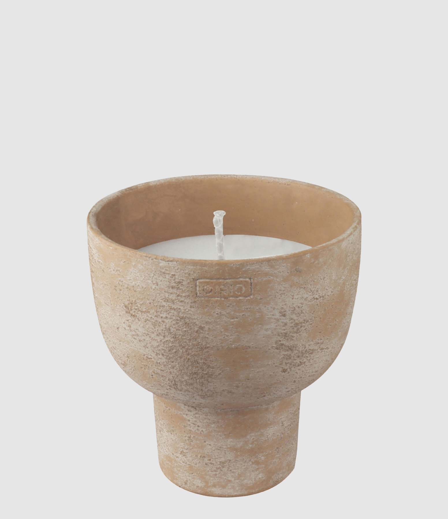 Bougie d'extérieur. Pièce de design apaisante et élégante, qui apporte avec naturel la sérénité et la chaleur du Sud à tout espace extérieur.