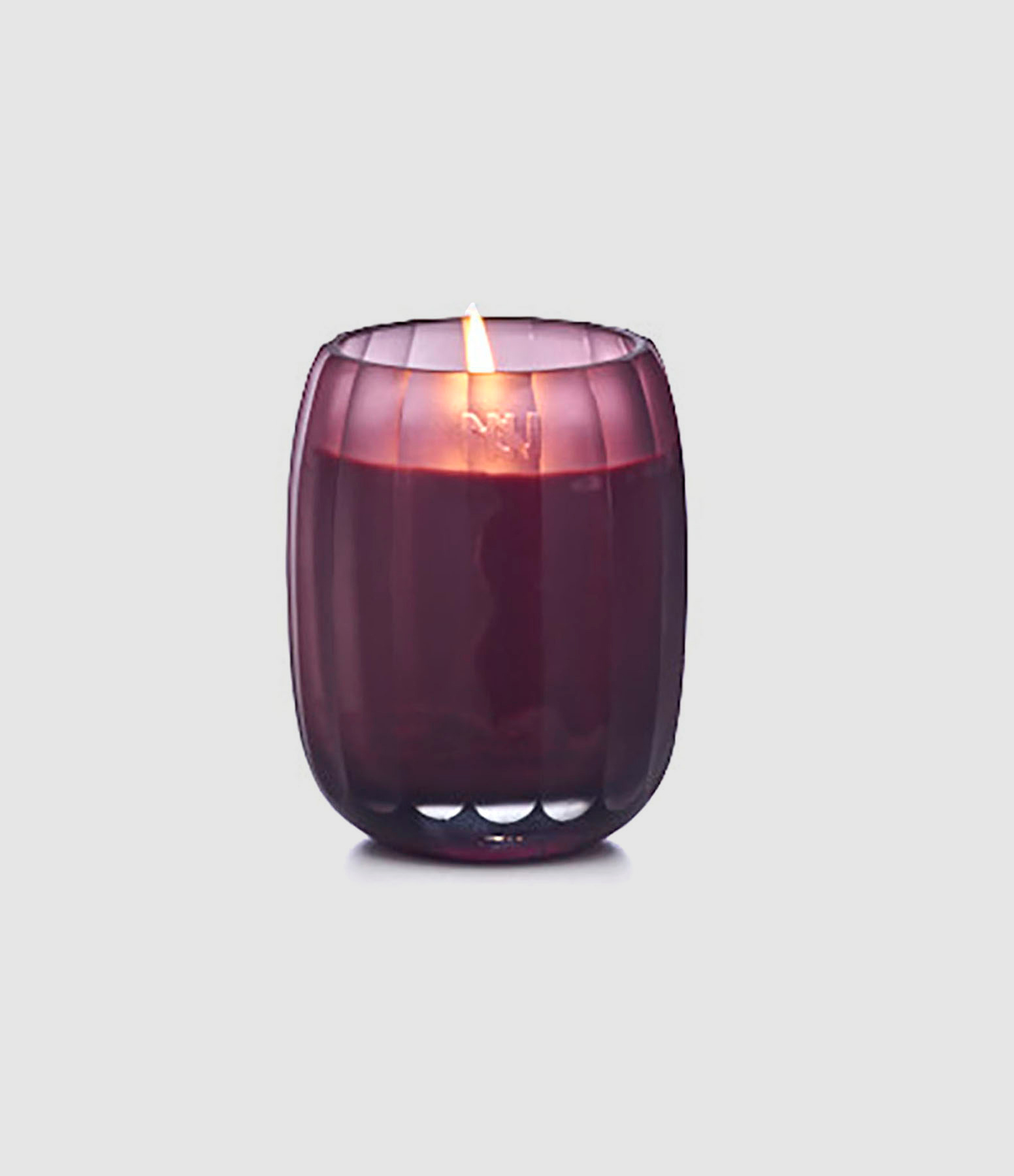Bougie parfumée à une mèche, dans un pot en verre. Le design de la bougie Ruby est un hommage à la pierre du même nom, à la chaleur de sa couleur, à la singularité de sa forme et à sa préciosité.