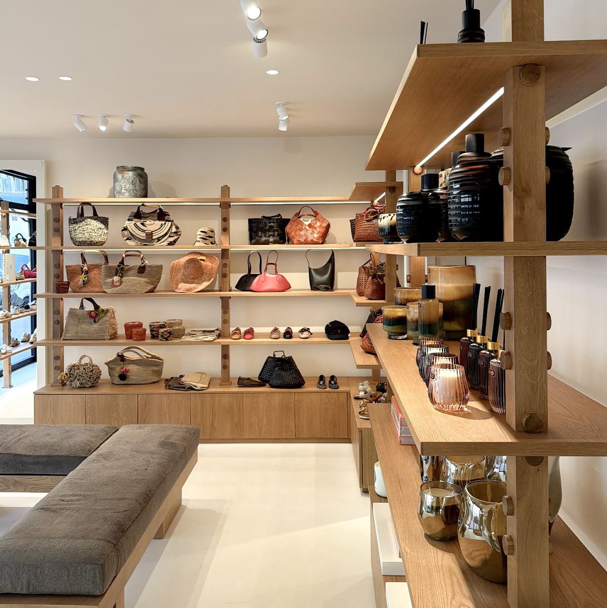Un espace lumineux et apaisant, pensé dans des lignes sobres et intemporelles. Ici, la clarté guide le regard, les volumes respirent et la circulation se fait naturellement, comme une invitation à ralentir. Les matières discrètes et les teintes douces composent un décor volontairement minimal, où chaque détail laisse toute la place aux collections. Une boutique conçue comme un écrin contemporain, en plein cœur du centre historique d’Annecy, où l’essentiel s’exprime avec justesse.