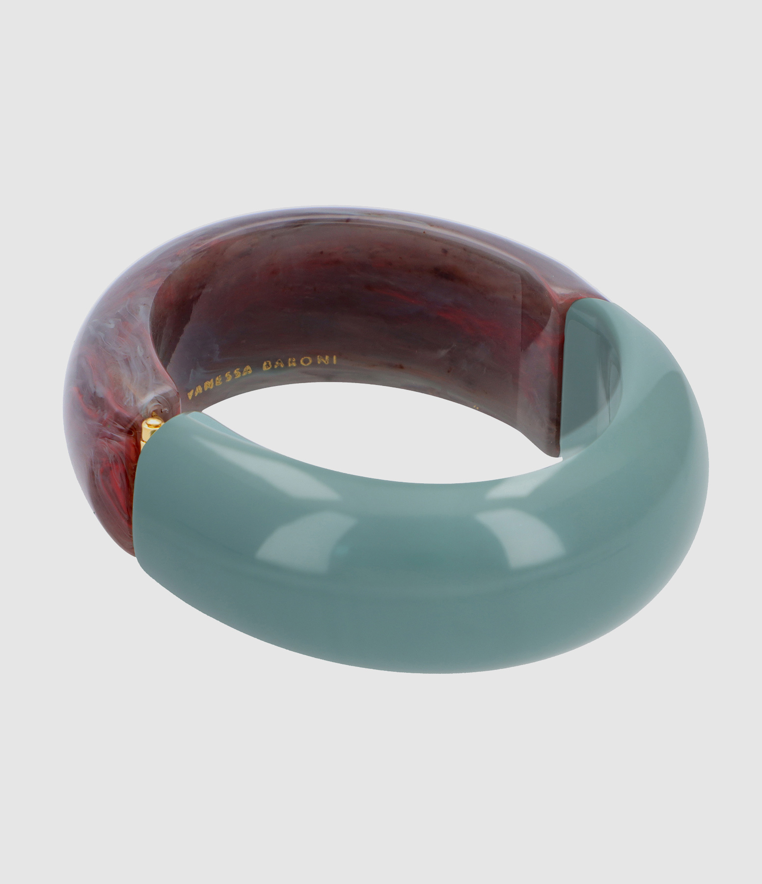 Bracelet jonc marron marbré et bleu canard. Fermeture aimanté.