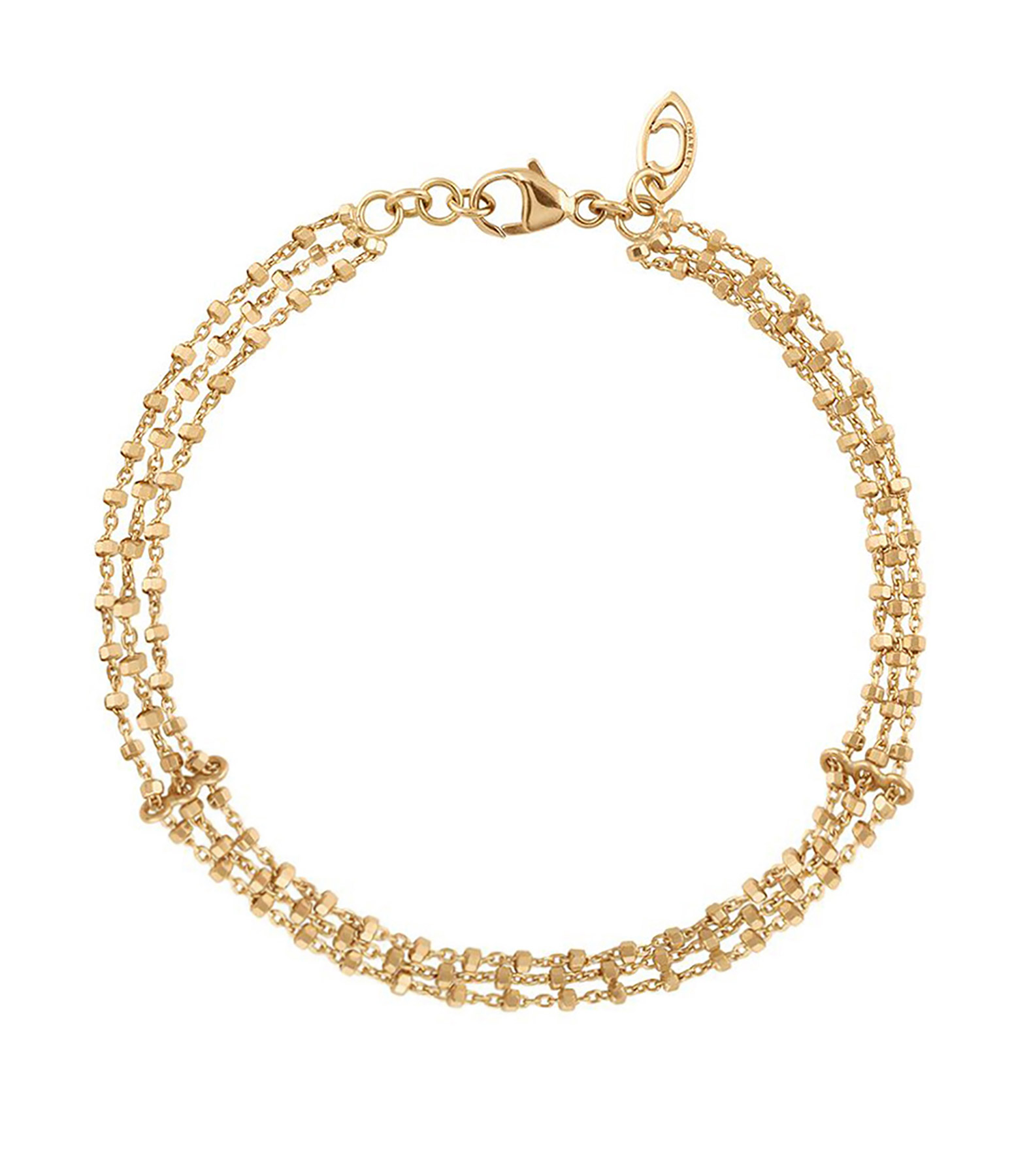 Bracelet en or jaune composé trois chaînes diamantées. Pampille de la marque.