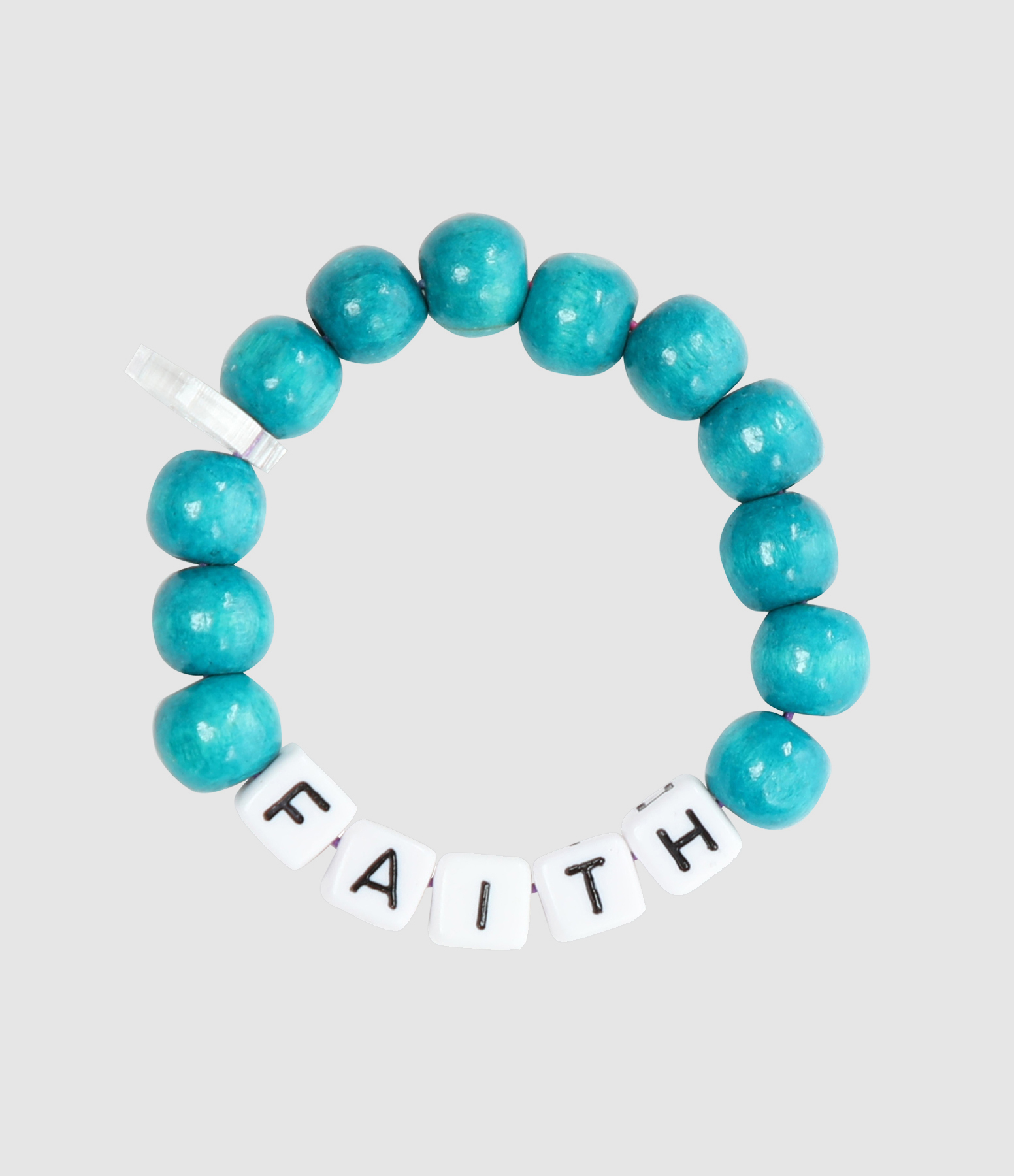 Bracelet de perles en bois, perles formant le mot "FAITH".