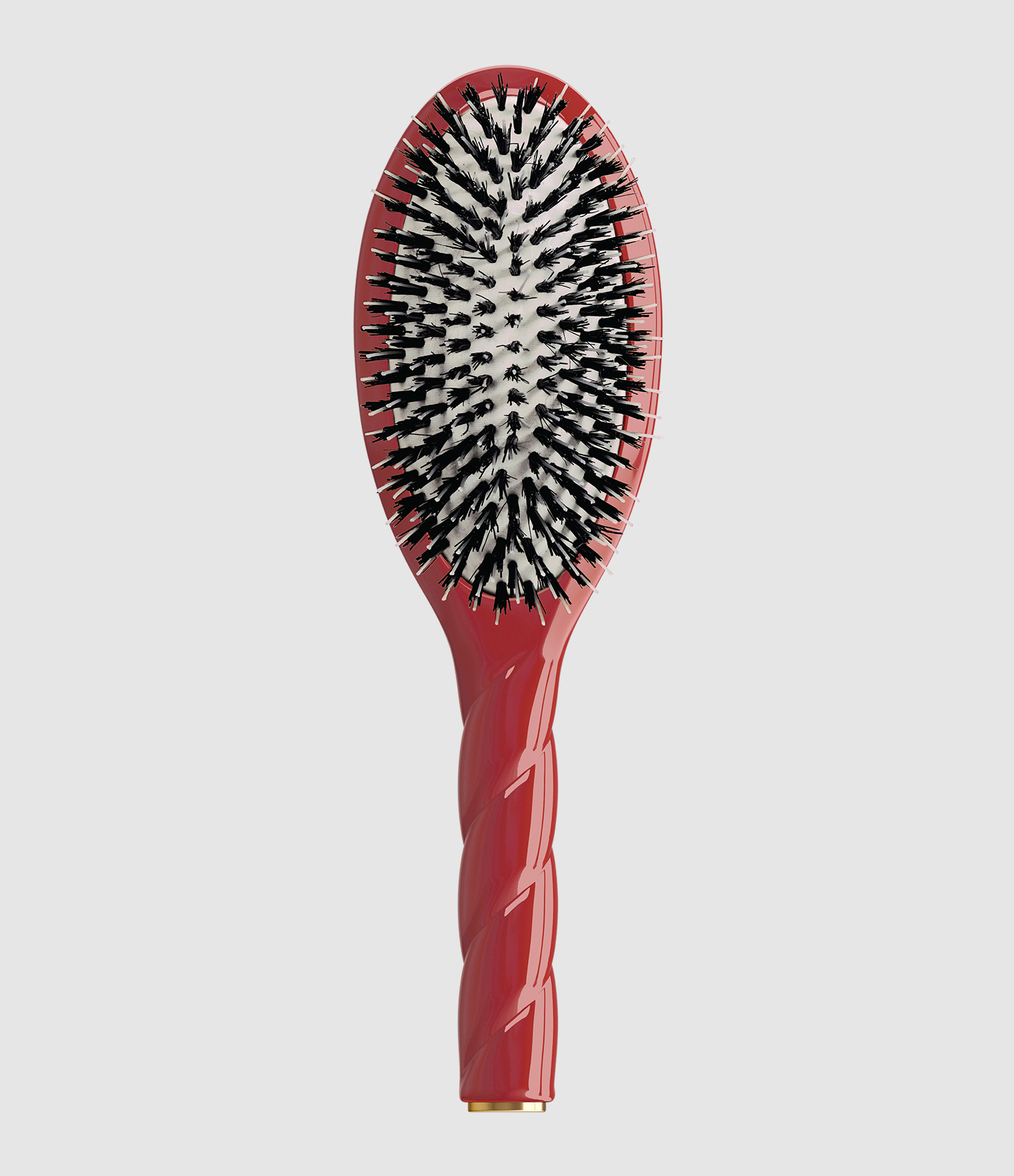 Brosse à cheveux en poils de sanglier et nylon. Les fibres nylon aux billes extra douces conçues pour le massage du cuir chevelu sensible pénètrent facilement la chevelure pour coiffer, structurer ou démêler. Les soies en kératine pure hydratent et gainent les cheveux pour leur apporter douceur et vitalité.