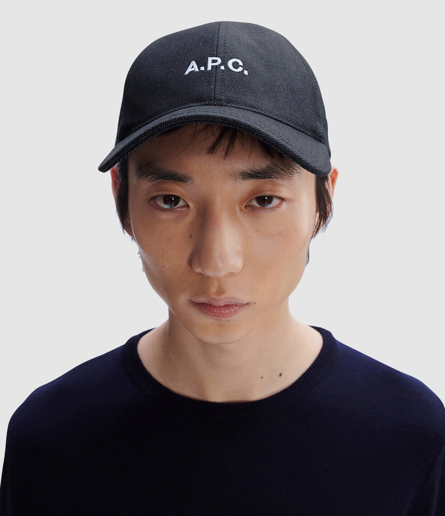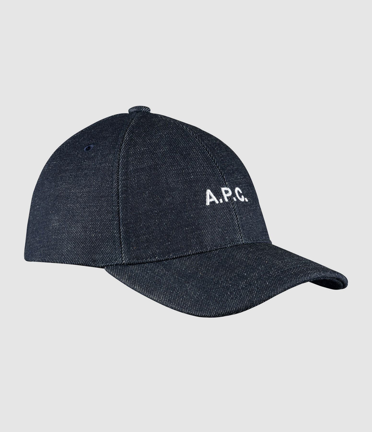 Casquette en denim bleu foncé avec logo blanc "A.P.C" brodé à l'avant. Languette réglable à l'arrière. Bande de propreté sur l'intérieur. Doublée.