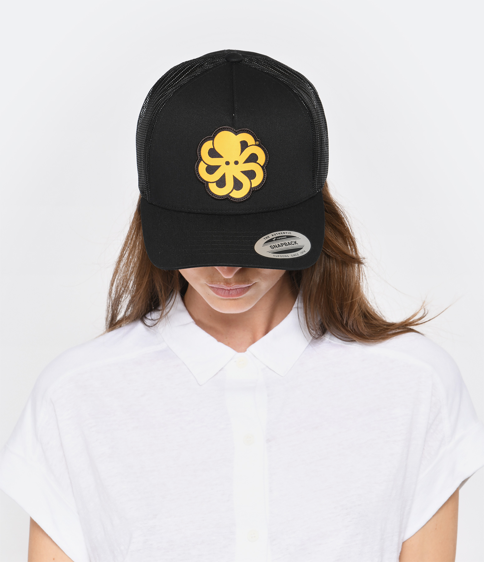 Casquette en coton et filet noir. Logo poulpe brodé sur le devant. Languette de réglage à l'arrière. Bande de propreté sur l'intérieur.